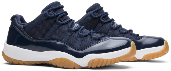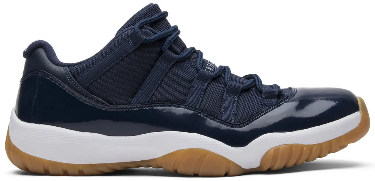The Air Jordan 11 Retro Low ‘Navy Gum’ delivers a simplistic colorway of the iconic silhouette, rendered in low-top form and equipped with the signature details of its mid-top counterpart. They include a ballistic mesh upper reinforced with a shiny patent leather overlay, both finished in a sleek Midnight Navy hue. Lightweight cushioning arrives via a Phylon midsole, enhanced with a full-length Air unit and supported by a gum rubber outsole with herringbone traction pods under the toe and heel.