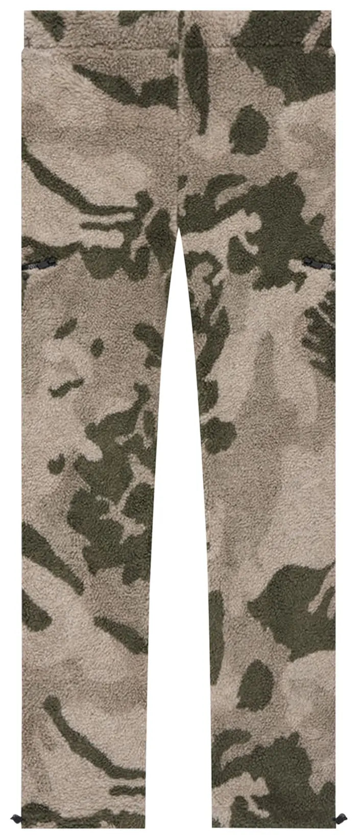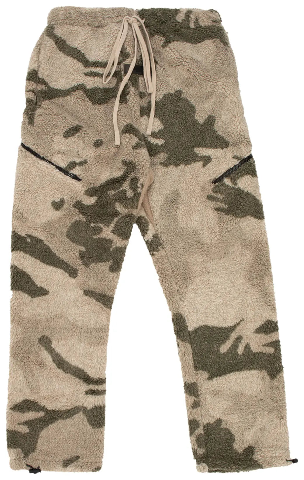 These Fear of God Essentials pants from SS22 are crafted from soft polar fleece with an all-over camouflage pattern. Cut for a straight-leg fit with adjustable cuffs, they're topped with a stretch waist featuring the brand's signature elongated drawstring. Each leg has a zippered pocket.