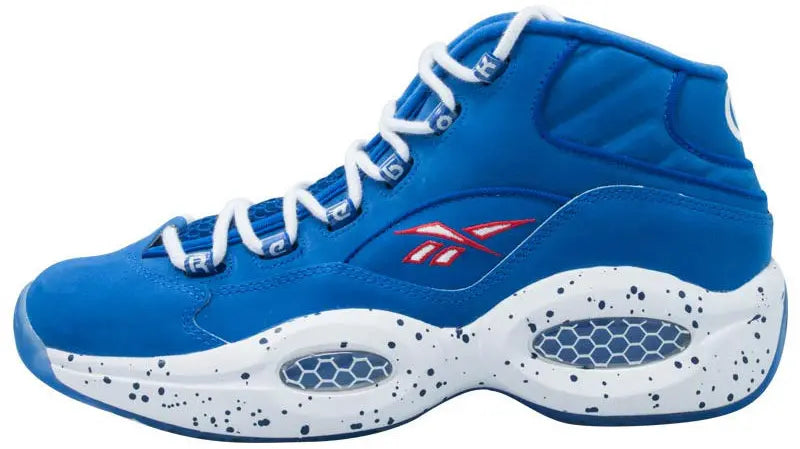 Commemorating Allen Iverson being the first overall pick in the 1996 NBA Draft, this Reebok Question Mid comes decked out in a Philadelphia 76ers-inspired Reebok Red, white and Reebok Royal colorway with a unique white speckled midsole. It also features ‘#1’ embroidered on the heel in place of the traditional ‘#3.’ The shoe launched in August 2013 at a Reebok Classic Breakout Camp basketball game at Rucker Park in Harlem, New York.