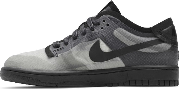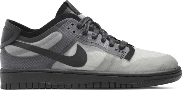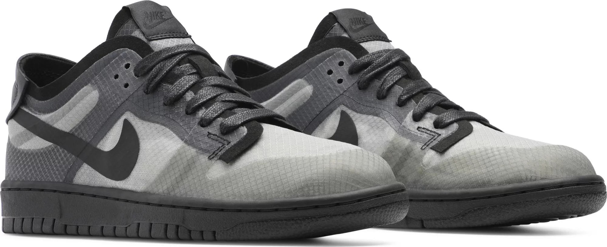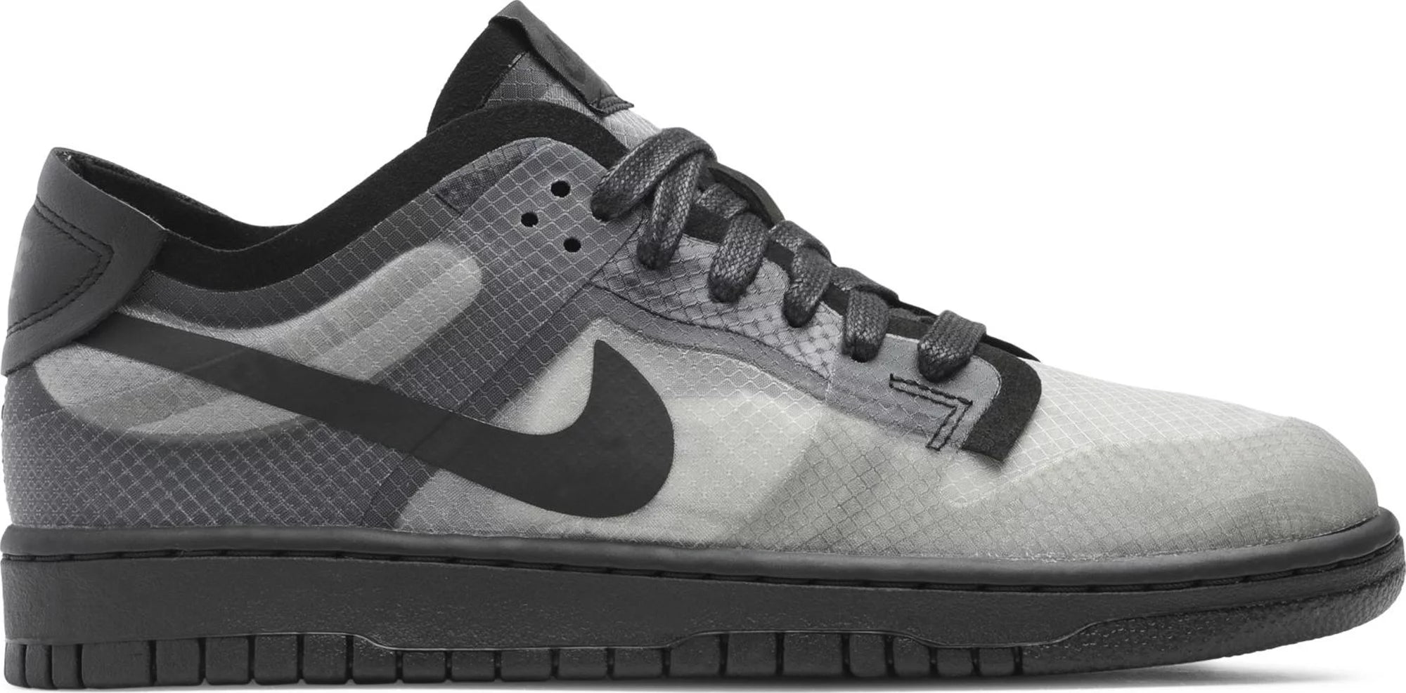 Made in collaboration with Rei Kawakubo’s pioneering fashion label, the Comme des Garçons x Nike Wmns Dunk Low ‘Black Clear’ treats the retro silhouette to a non-traditional build, making the shoe the spiritual successor to the brands’ clear Dunk Hi from 2017. This time around, the upper is constructed from Nexkin, a translucent textile previously featured on silhouettes that include the Vaporfly SP and React Element 87.