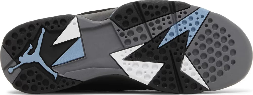 The 2023 edition of the Air Jordan 7 Retro ‘Chambray’ brings back a sleek colorway originally released in 2006. The championship silhouette sports a black nubuck upper with a pale blue Jumpman embroidered on the lateral ankle. Additional branding elements include a ‘23’ heel patch and ‘Air Jordan’ inscribed on the patterned tongue. An interior sleeve offers a snug, secure fit, while a webbing pull tab at the heel provides easy on and off. The sneaker rests on a matching black polyurethane midsole with angular detailing in Chambray and Light Graphite.