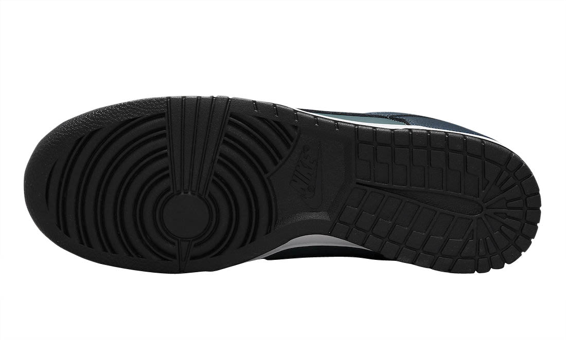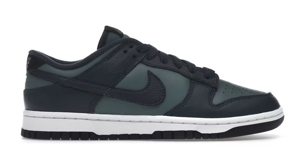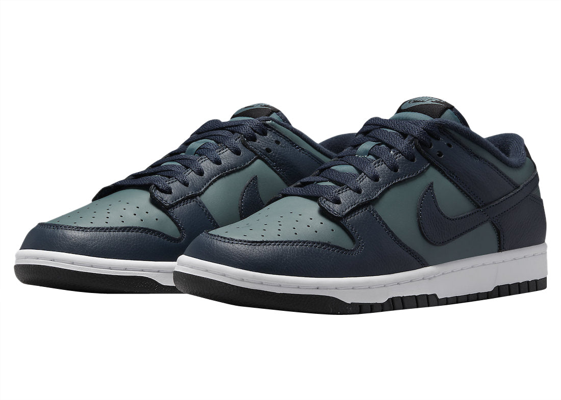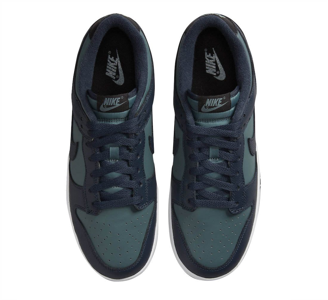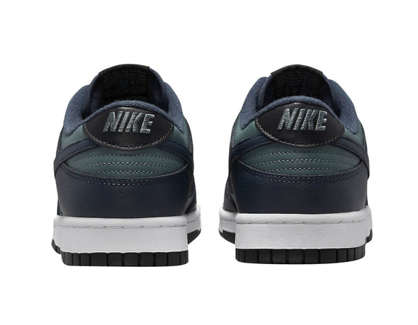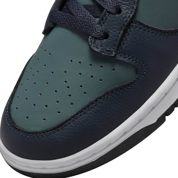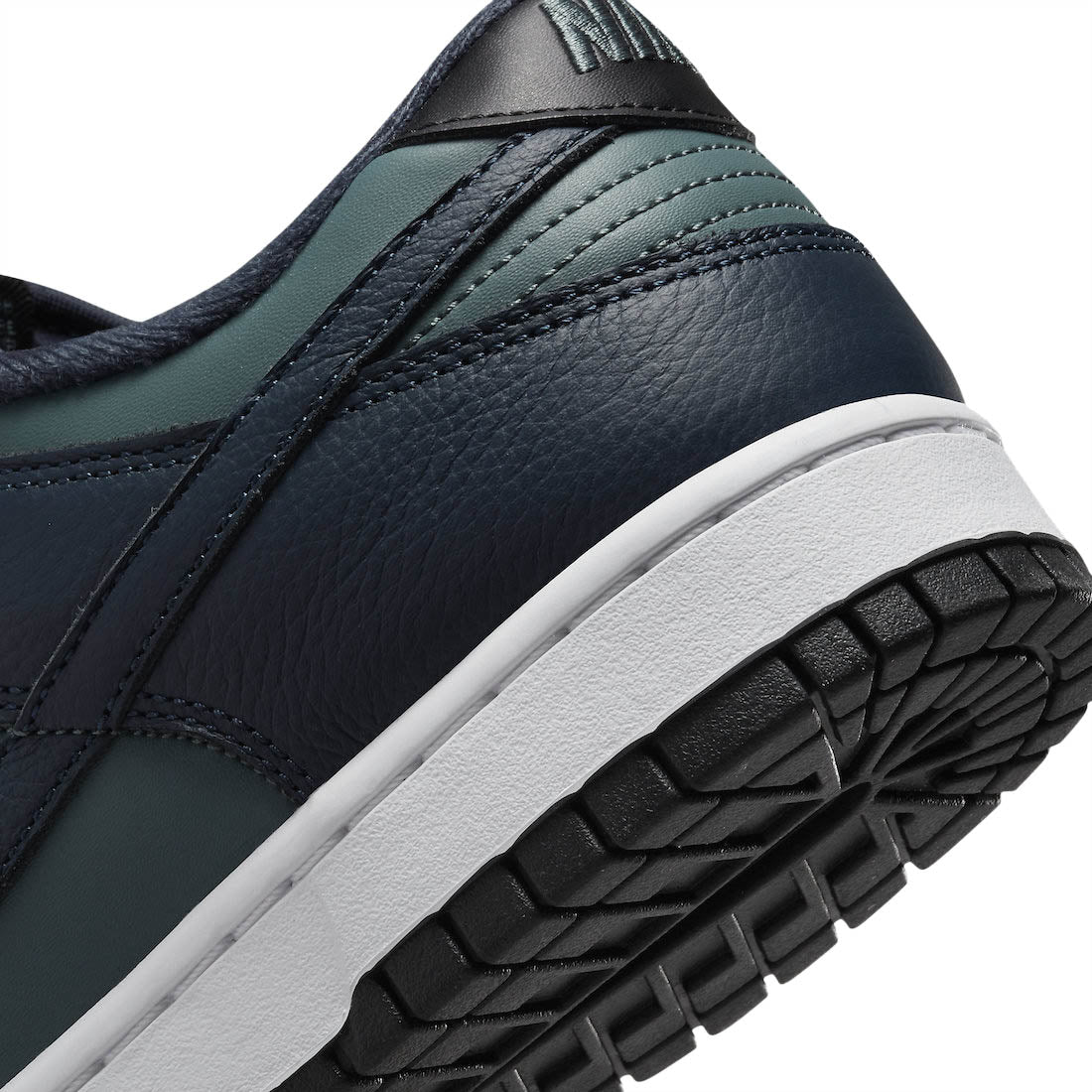 The Nike Dunk Low Premium ‘Armory Navy’ showcases nuanced hues and textures on the classic basketball shoe turned modern wardrobe essential. The low-top sports a smooth leather upper in Mineral Slate, contrasted by navy tumbled leather overlays and a color-matched signature Swoosh. Standard Nike branding hits settle on the woven tongue tag, sockliner, and back tab. The sneaker sits atop a stark white midsole, enhanced with a foam wedge and supported by a navy rubber outsole.