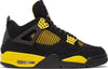 The 2023 edition of the Air Jordan 4 Retro ‘Thunder’ brings back the coveted colorway originally released in 2006 (and previously reissued in 2012). The upper is draped in smooth black nubuck, contrasted by hits of yellow on the molded eyelets, quarter panel, and lower tongue, with the latter two components covered in black netting. Jumpman branding appears on the Flight tongue tag and molded heel tab. Lightweight cushioning comes courtesy of a yellow polyurethane midsole, enhanced with an exposed Air-sole unit in the heel.