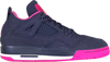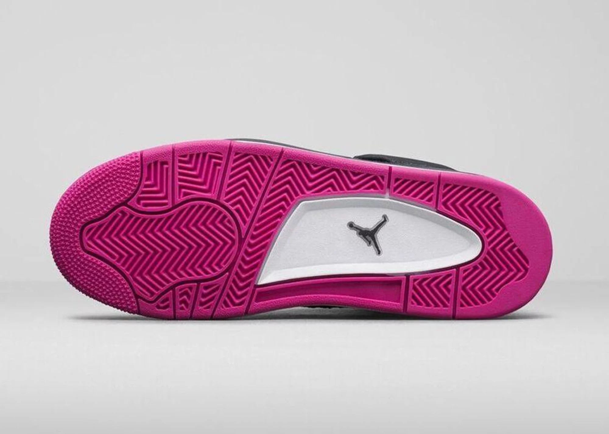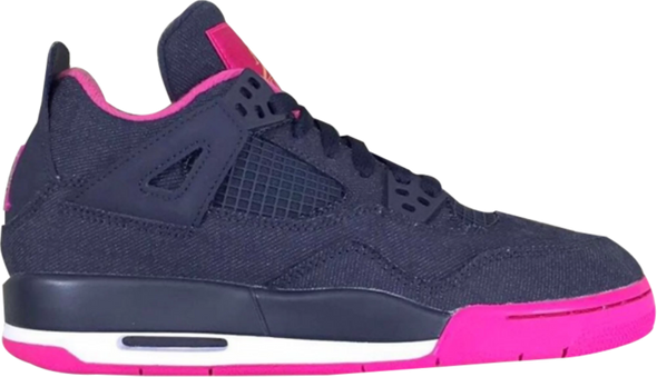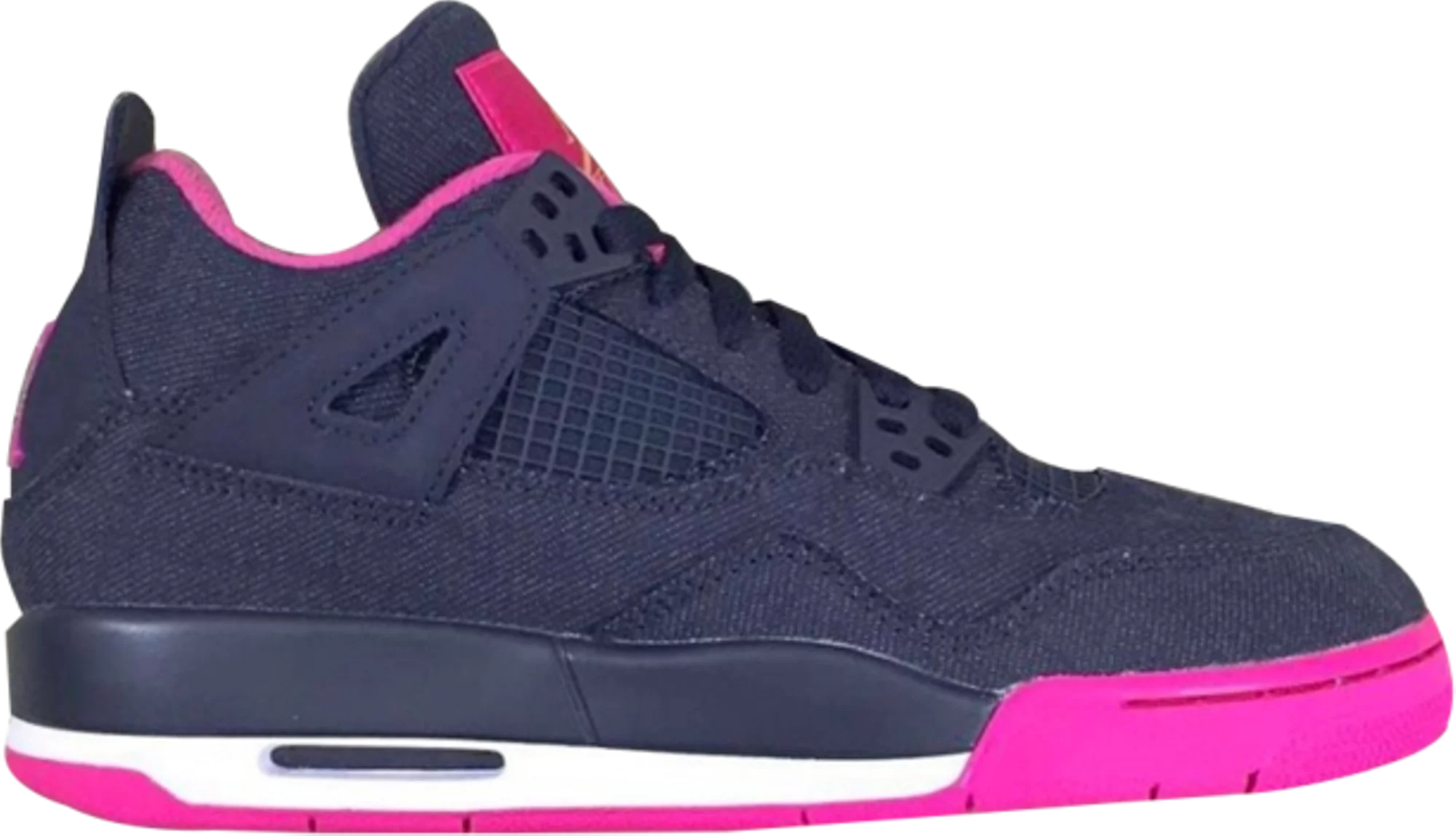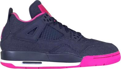 Offered exclusively in girls’ sizing, this Air Jordan 4 Retro showcases dark blue denim across the upper. The cotton twill fabric is complemented by traditional AJ4 detailing, including molded eyelets, quarter panel netting and an extended heel tab, all in a matching shade of blue. Pops of Vivid Pink add contrasting color to the woven tongue tag, lining, Jumpman heel logo and outsole.