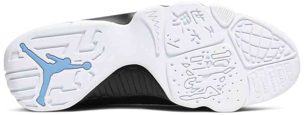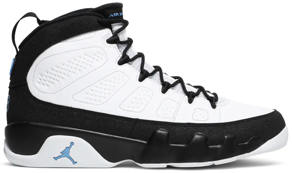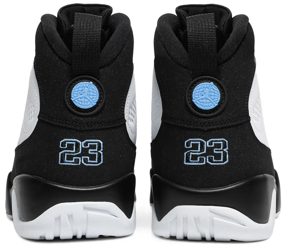 The Air Jordan 9 Retro ‘University Blue’ draws inspiration from the ‘90s, as the color scheme recalls an Orlando Magic PE worn by Nick Anderson and Penny Hardaway. The perforated white leather upper is fortified with a contrasting black overlay, matching the sneaker’s molded eyelets and rope laces. University Blue hits make their way to the various branding elements, including an Air Jordan tongue tag and a Jumpman icon on the lateral midsole.