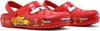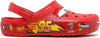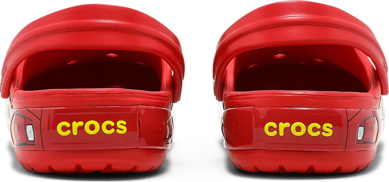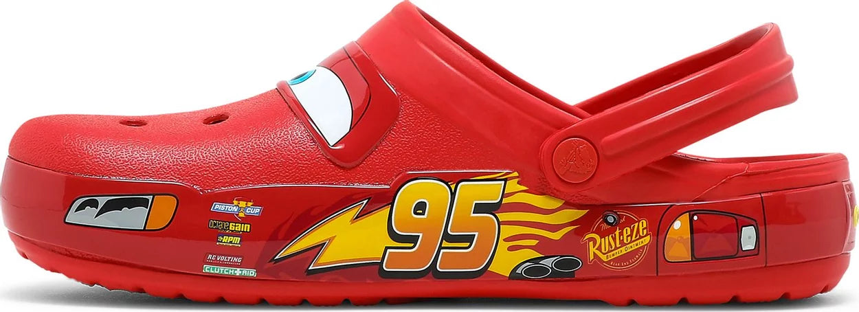 The Cars x Crocs Classic Clog ‘Lightning McQueen’ takes inspiration from the vehicular hero of the hit 2006 Pixar film. The character’s likeness, highlighted by windshield eyes and a smiling grille, appears on the red Croslite foam upper. The character’s signature decals are accompanied by functioning LEDs that light up with every step. Large perforations on the toe box offer improved breathability, while a pivoting heel strap provides a secure fit.