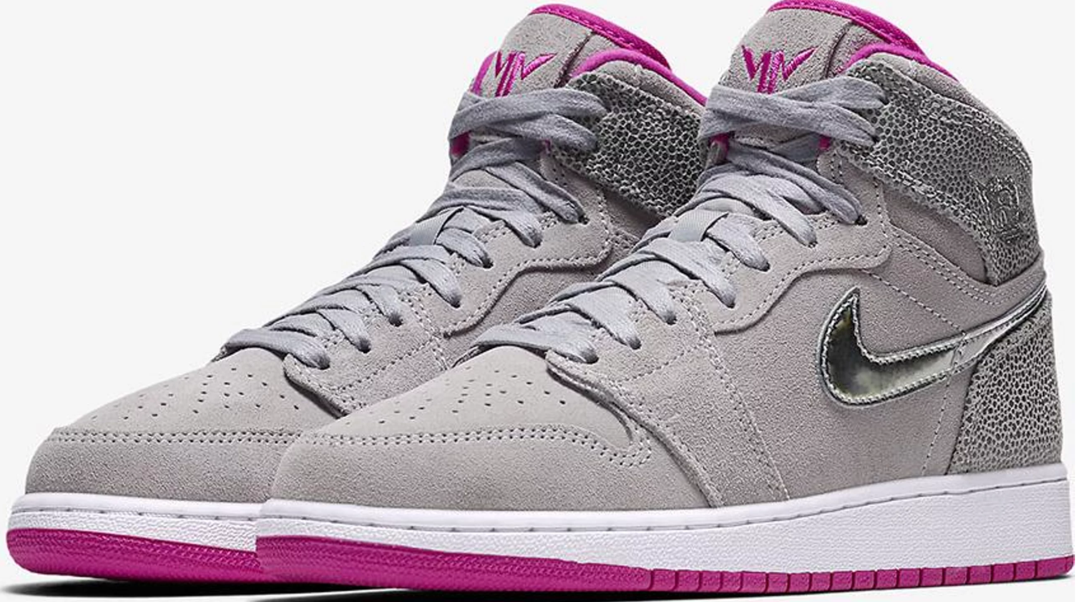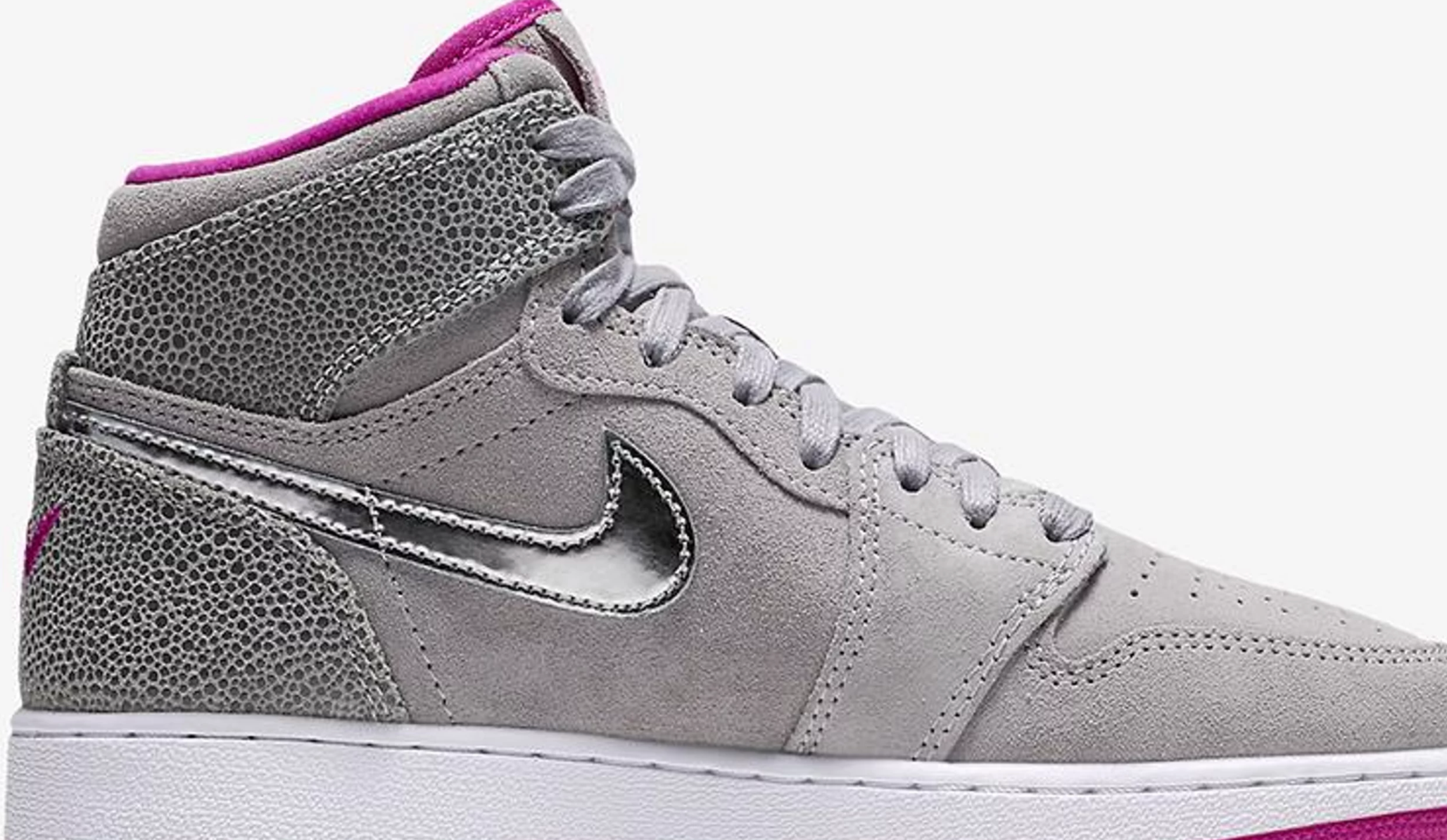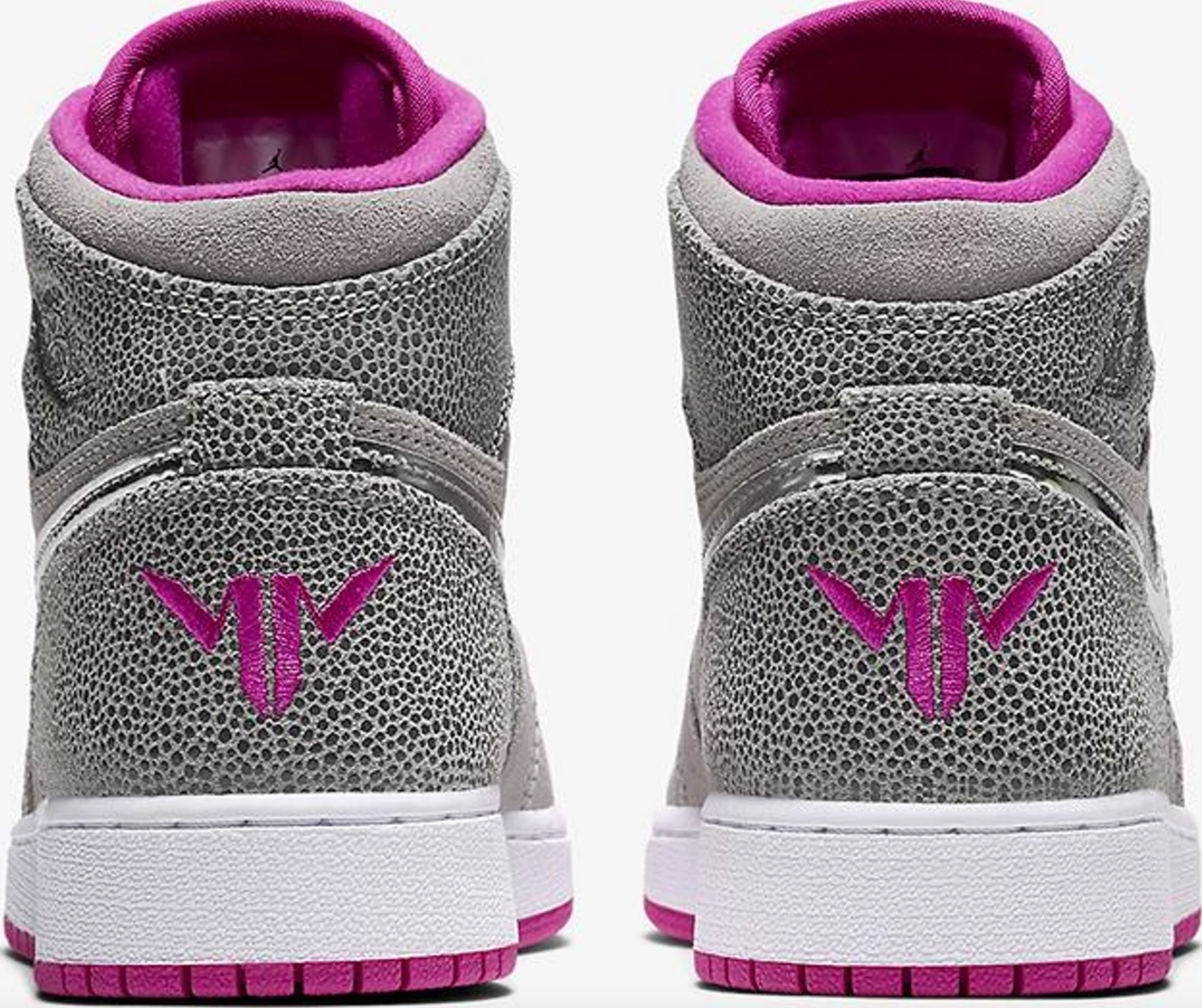 WNBA All-Star and MVP Maya Moore gets her own signature rendition of the Air Jordan 1. Featuring a mostly grey suede upper construction, the Air Jordan 1 Retro GG ‘Maya Moore’ sports a Safari print on the leather heel panel and a shiny leather Swoosh on the quarter panel. The sneaker is contrasted with Fuchsia Flash hues on the outsole, sockliner and Moore’s signature logo on the tongue and heel.