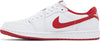 The Air Jordan 1 Retro Low OG ‘University Red’ treats the classic silhouette to a simplistic two-tone makeover. Crisp white leather is utilized on the upper, contrasted by vibrant scarlet accents on the Swoosh, collar lining and heel tab. The latter is marked with an embroidered Wings logo, while a woven Nike Air tag adorns the breathable nylon tongue. Anchoring the low-top is a traditional cupsole, featuring white sidewalls and a grippy red rubber outsole.
