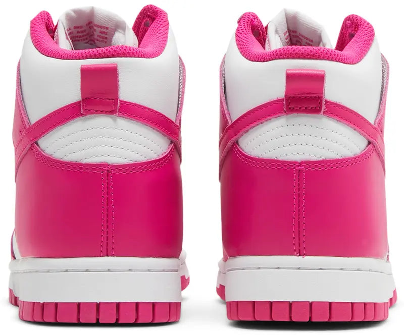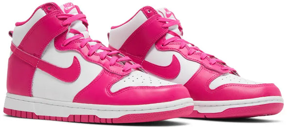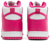 The Nike women’s Dunk High ‘Pink Prime’ updates the classic hoops shoe with a candy-bright dose of color. The high-top carries an all-leather upper that pairs a clean white base with contrasting overlays in a lively shade of pink. Perforated detailing on the toe box offers improved breathability, while a padded mesh-lined collar delivers a snug, comfortable fit. Anchoring the sneaker is a sturdy rubber cupsole, featuring white sidewalls and a grippy pink rubber outsole.