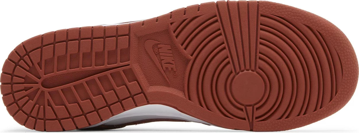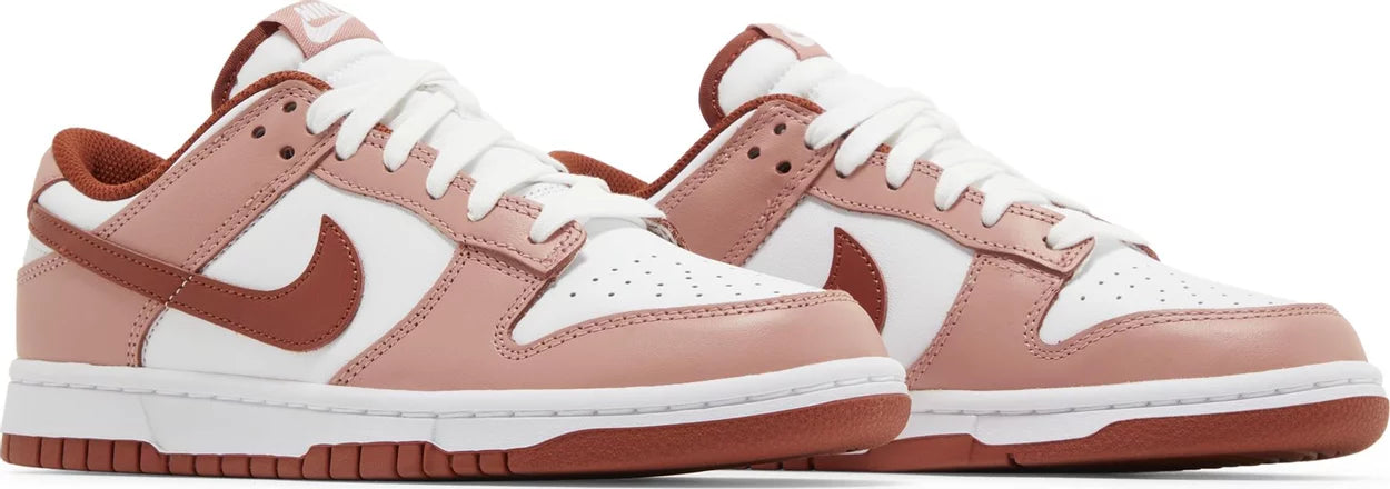 The Nike Women’s Dunk Low ‘Red Stardust’ channels vintage hoops style, highlighted by a white leather upper with dusty rose overlays at the forefoot and heel. Rugged Orange accents settle on the collar lining and signature Swoosh. Additional branding elements take the form of a woven Nike tongue tag and an embroidered Nike wordmark on the back tab. The sneaker sits atop a sturdy rubber cupsole, featuring stitched sidewall construction and an interior foam wedge.