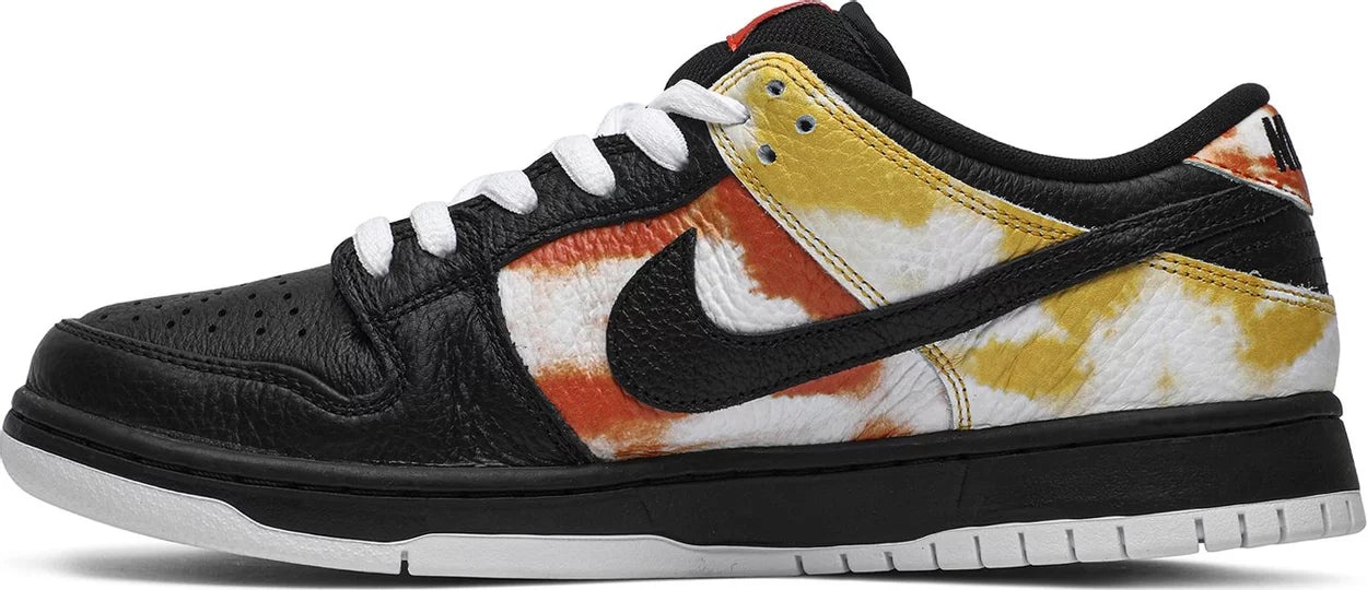 Dropping in January 2020, the Dunk SB Low 'Tie-Dye Raygun - Black' brings back a fan favorite from the height of Nike SB’s Pink Box era. The design is updated with a tie-dye effect in honor Sandy Bodecker, the late Nike executive credited for the success of the Swoosh’s skateboarding division. The shoe itself is inspired by the Roswell Rayguns, a fictional ABA team featured in a Nike Basketball marketing campaign from 2002.