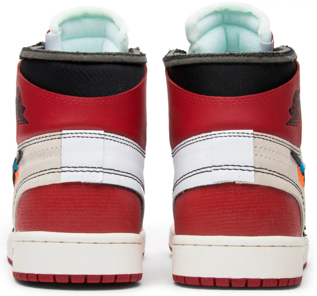 Created by designer Virgil Abloh, the Air Jordan 1 x Off-White comes in the classic Chicago colorway. Some of the sneakers' half-finished features include a Swoosh connected to the shoe with visible blue stitching, 'Air' printed on the midsole, and an Off-White zip tie on the collar. The box comes deconstructed as it's been turned inside-out with the inside consisting of a black base and gold Jumpman logo, while the outside is plain cardboard with the words 'Jumpman' printed on it. Virgil's Off-White collection included remixed iterations of the Air VaporMax, Air Presto, Air Max 90, Blazer, Air Max 97, Hyperdunk 2017, Air Force 1, Zoom Fly, and Chuck Taylor.