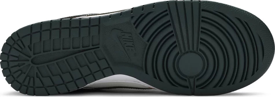 The Nike Dunk Low SE ‘Multi Camo’ dresses the vintage hoops shoe in white textile with mismatched leather overlays in clashing camouflage prints. On the right shoe, the forefoot overlay is rendered in orange and yellow hues, while the heel overlay combines a burgundy base with varying shades of green. The left shoe features greyscale camo on the forefoot and desert camo on the heel overlay. Both shoes are appointed with dark green accents on the Nike-branded woven tongue tag, textile collar lining, leather Swoosh and rubber outsole. Mismatched heel tabs display an embroidered Nike wordmark on the left shoe and a basketball graphic on the right.