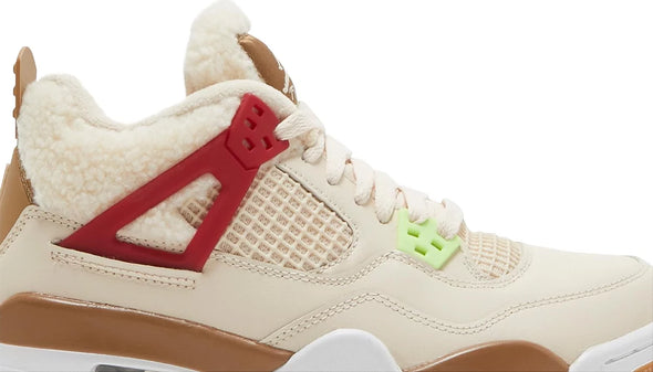 Offered exclusively in kids sizing, the Air Jordan 4 Retro GS ‘Wild Things’ updates Tinker Hatfield’s original design with a cozy build. The upper is crafted from tan leather with tonal fleece construction on the collar and tongue. Molded eyelets are rendered in neon green, pink, royal blue and crimson, with the latter two hues color-matched to the sneaker’s structural wings. Jumpman branding decorates the molded heel tab and woven tongue tag, both rendered in a dark beige finish. Lightweight cushioning is provided by a white foam midsole, enhanced with visible Air-sole cushioning and reinforced with grippy gum rubber under the forefoot and heel.