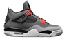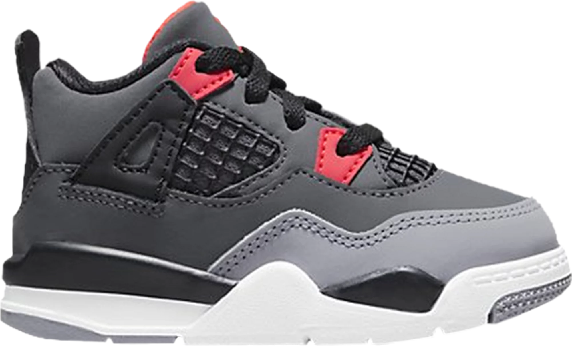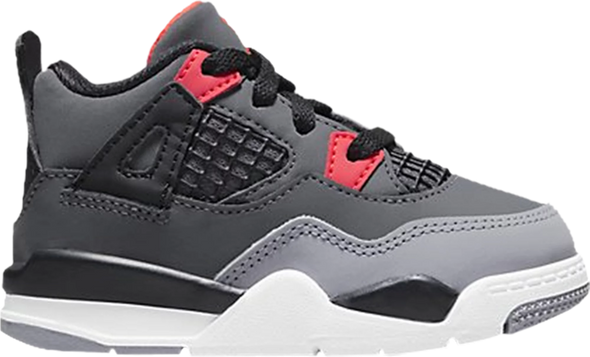 The Air Jordan 4 Retro ‘Infrared’ features distinctive color blocking that recalls the ‘Green Glow’ AJ4 release from 2013. The upper is crafted from smooth nubuck in a charcoal finish. A lighter shade of grey distinguishes the forefoot overlay, while black accents land on the quarter panel netting, structural wings and Jumpman-branded heel tab. The sneaker’s titular hue lights up the woven tongue tag and a quartet of molded eyelets. A polyurethane midsole packs visible Air-sole cushioning in the heel for a smooth ride.