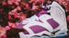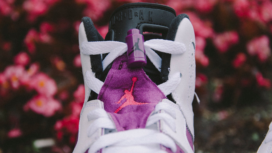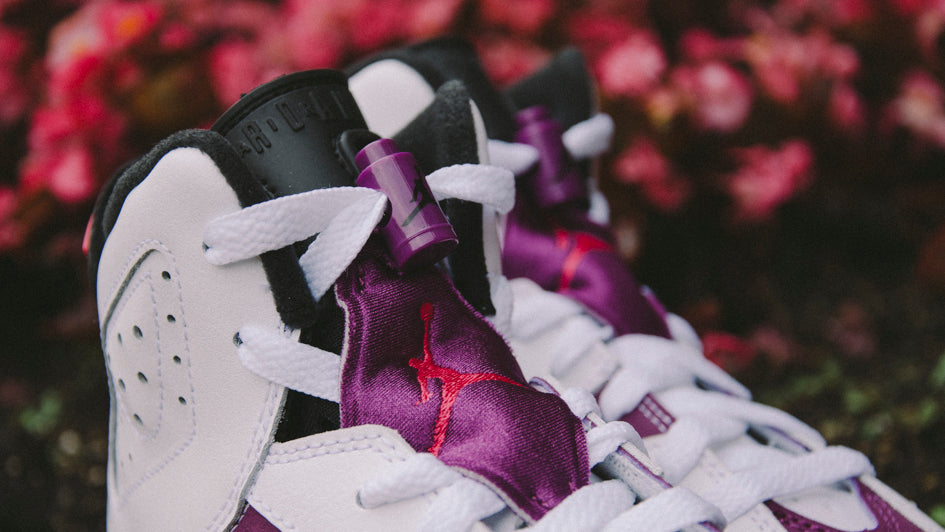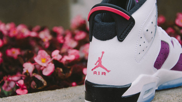 Following in the footsteps of the popular Air Jordan 6 ‘Carmine,’ the ‘Vivid Pink’ version was made available exclusively in grade school sizing in 2014. Swapping red for a vibrant pink hue, the sneaker also features details such as a Grape colored lace lock, black oversized tongues, and icy translucent outsoles.