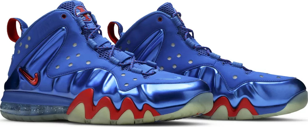 Retired NBA star Charles Barkley gets a special colorway of the Barkley Posite Max to celebrate his long and successful career, with a focus on his time with the Philadelphia 76ers. The Barkley Posite Max 'Sixers' features a blue Foamposite upper with metallic effects along the sidewall and a padded tongue. The mid-top also sports red accents along the midsole, jeweled Swoosh and branding at the heel and tongue. A Max Air bubble unit is included in the heel.