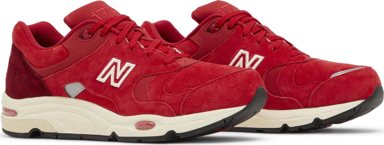 Launching as part of the two-piece ‘Canada Pack,’ the Kith x 1700 ‘Canada Pack - Roccoco Red’ presents a tonal colorway of the lifestyle runner in celebration of the opening of Kith’s Toronto flagship. An ‘N’ logo in white embroidery decorates the upper, crafted from pigskin suede in two shades of red. Silver reflective detailing appears on the toe box, midfoot and back heel, the latter marked with embroidered Kith branding. Lightweight cushioning is provided by New Balance’s ABZORB midsole in a subtle cream finish.