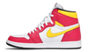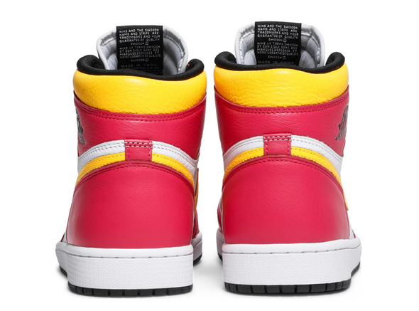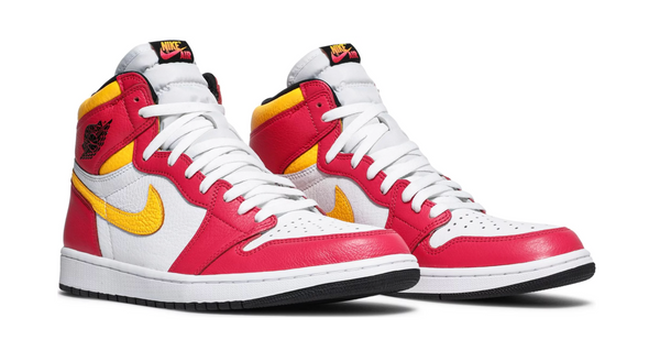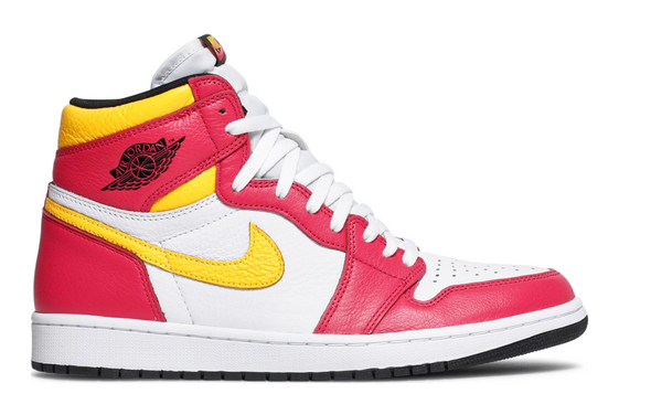 The Air Jordan 1 Retro High OG ‘Light Fusion Red’ treats the iconic silhouette to a spirited makeover, highlighted by a white leather upper with contrasting dark pink overlays. Laser Orange accents land on the collar and signature Swoosh. Both colors are rendered in gradient fashion on the Nike Air logo that adorns the tongue tag. The high-top rides on a standard rubber cupsole, housing a resilient foam wedge enhanced with Nike Air cushioning.