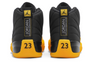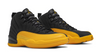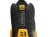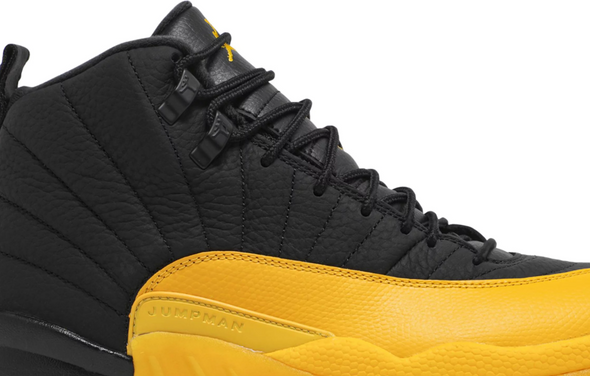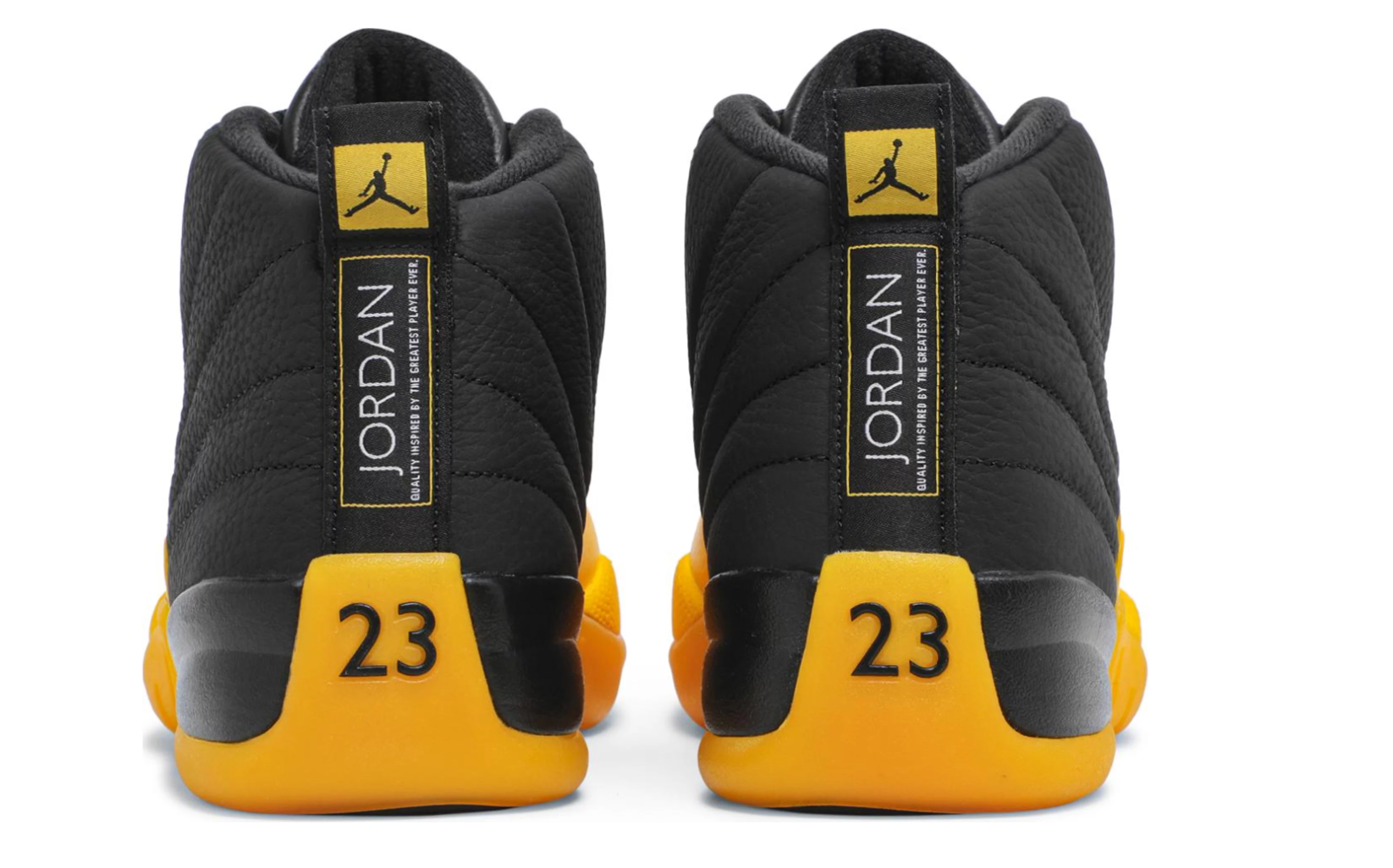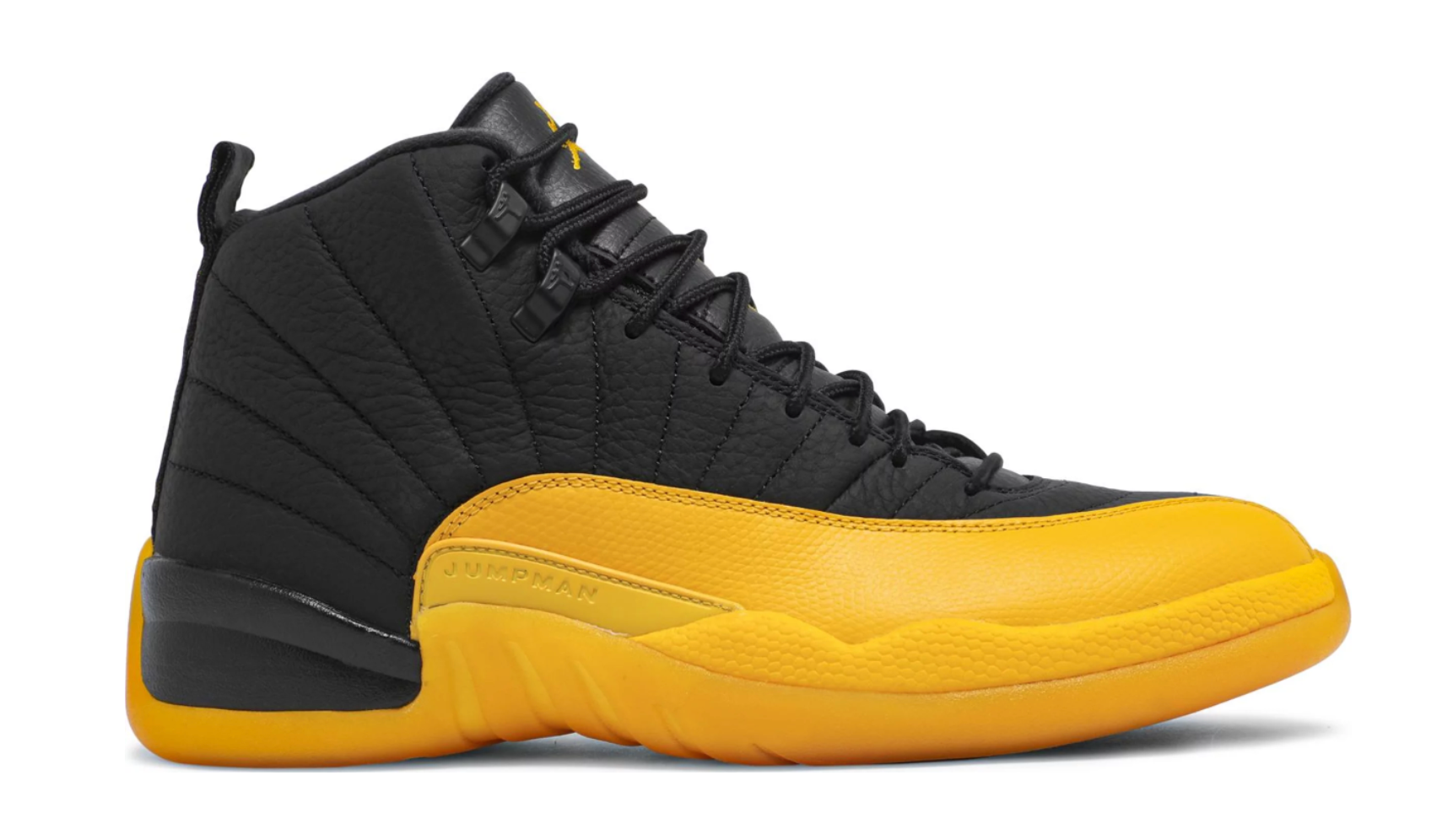 The Air Jordan 12 Retro ‘University Gold’ features a simple two-tone color scheme that recalls the ‘Away’ PE that Gary Payton during the ’03 to ’04 NBA season – the only stretch in his lengthy career with the Los Angeles Lakers. The retro mid-stop sports a black tumbled leather upper with signature stitch detailing, contrasted by a University Gold finish on the textured forefoot overlays, rubber outsole and branding elements.