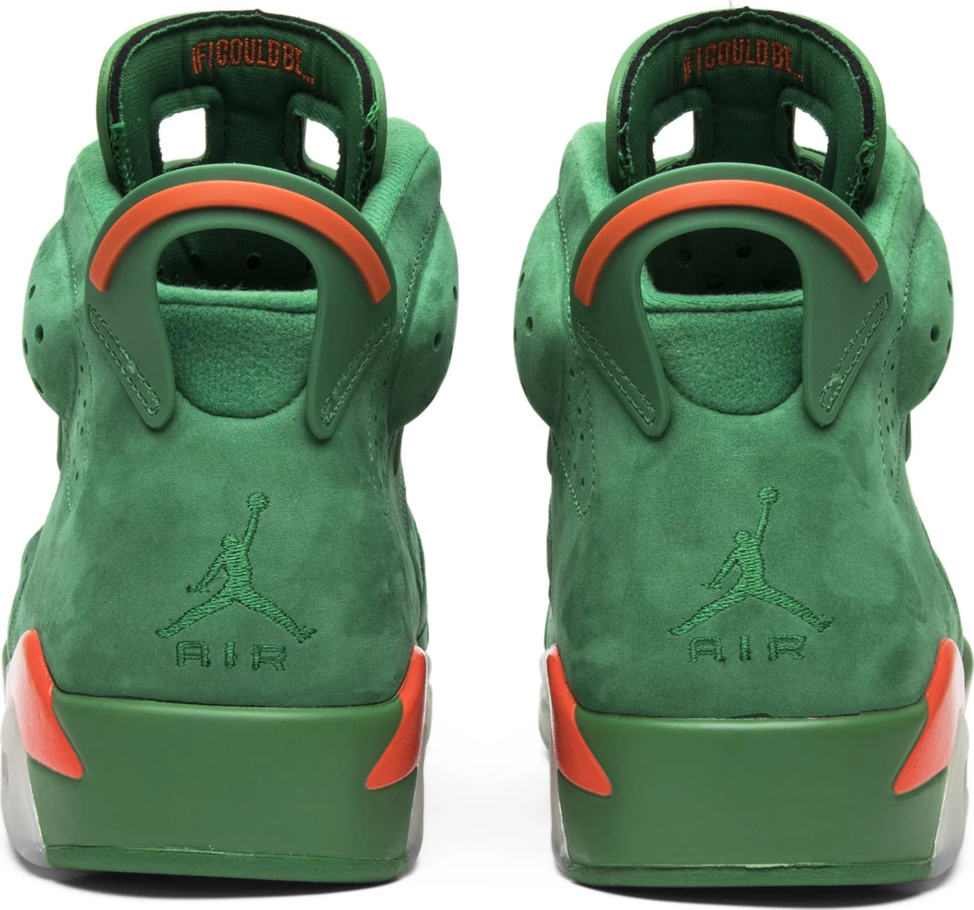 To commemorate Michael Jordan’s 1991 iconic ‘Like Mike’ Gatorade commercial, Nike debuts the Nike Air Jordan 6 Retro NRG in Green Suede. The exterior is outfitted with a bold green, white and orange colorway. It features a sports bottle-inspired lace lock, perforated suede upper and supportive Air unit sole. The sneaker is accented with a Gatorade-branded insole and “If I Could Be” embroidered on the interior of the tongue.