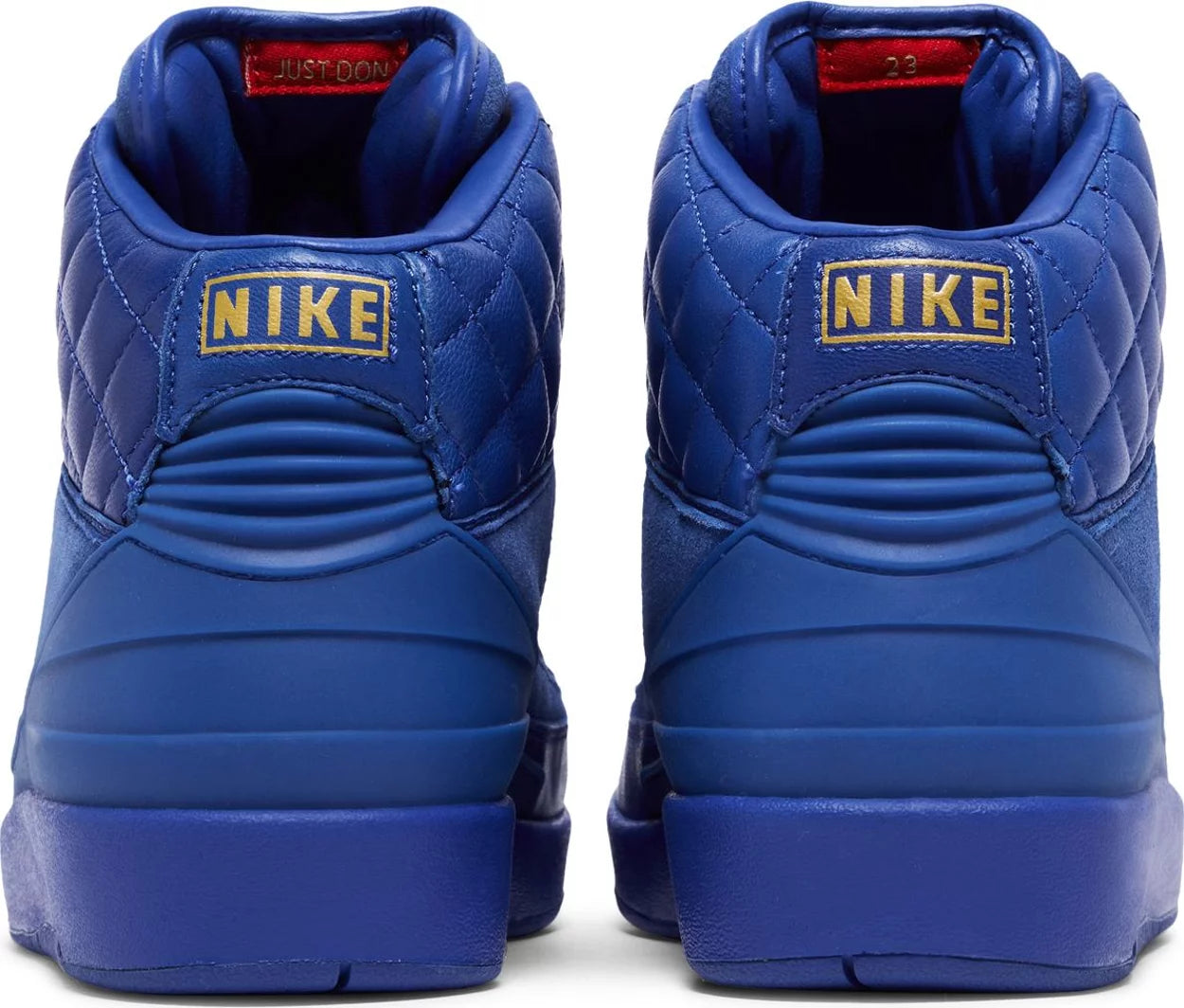 Crafted in Italy, Don C used the Air Jordan 2s Italian origins as inspiration by adding a quilted texture inspired by Chanel bags made in Italy. With the 2015 release not sold on Nike.com, the Just Don x Air Jordan 2 Retro 'Varsity Royal' was all the more coveted. The sneaker came with special packaging, dustbags, gold 'Wings' logo pins, and released alongside a matching bomber jacket. Don C also released the Air Jordan 2 Retro 'Beach' in 2016 and the Air Jordan 2 Retro 'Arctic Orange' in 2017.