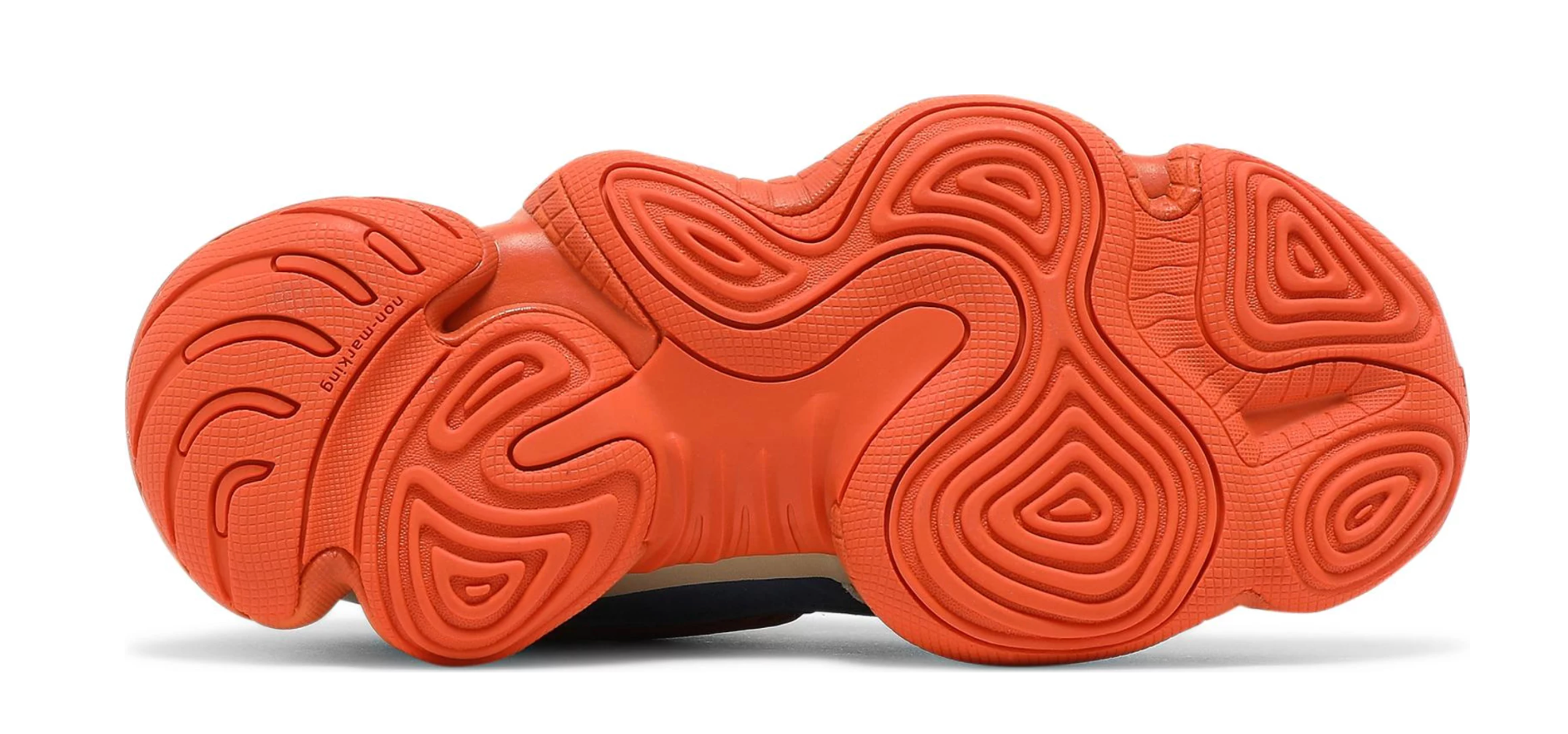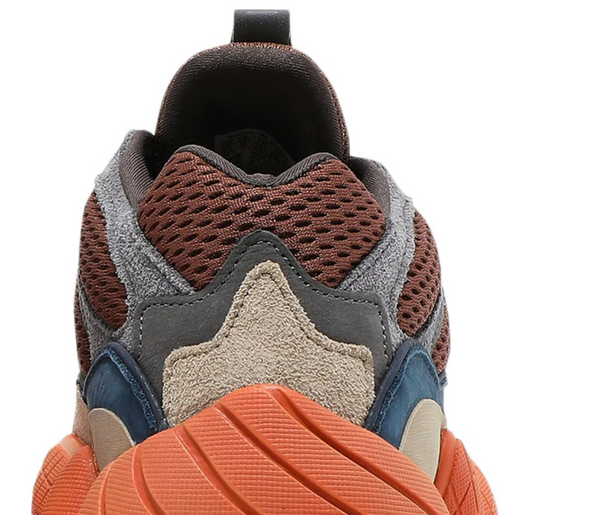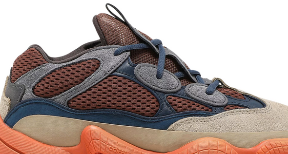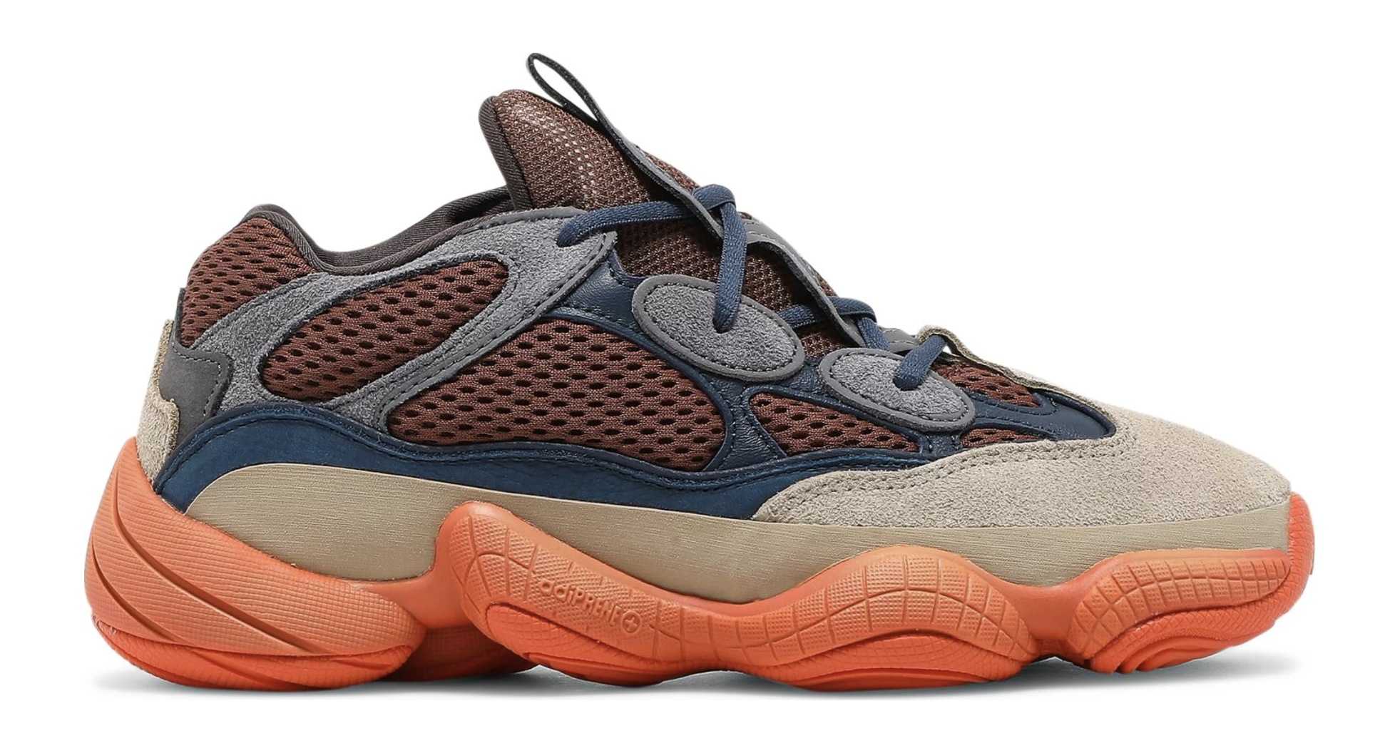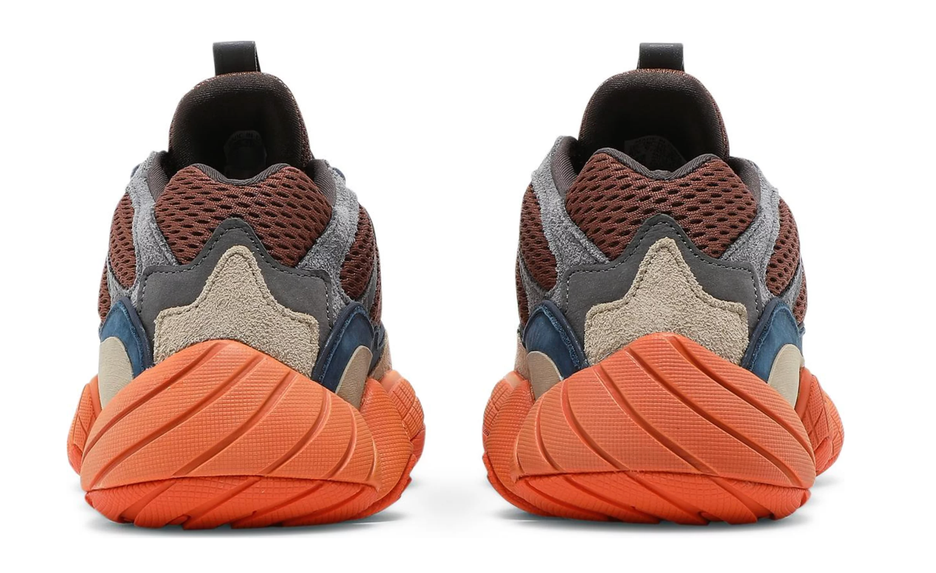 The adidas Yeezy 500 ‘Enflame’ spotlights the sneaker’s adiPRENE+ tooling with a vibrant orange finish. Offering a blend of impact absorption and responsive cushioning, the podular midsole is directly inspired by the adidas KB8 3, released in 1999 as Kobe Bryant’s third signature shoe. Up top, the sneaker’s complex build combines brown open mesh with soft suede overlays in tan, grey and indigo. A rubber midfoot wrap provides added durability and support.