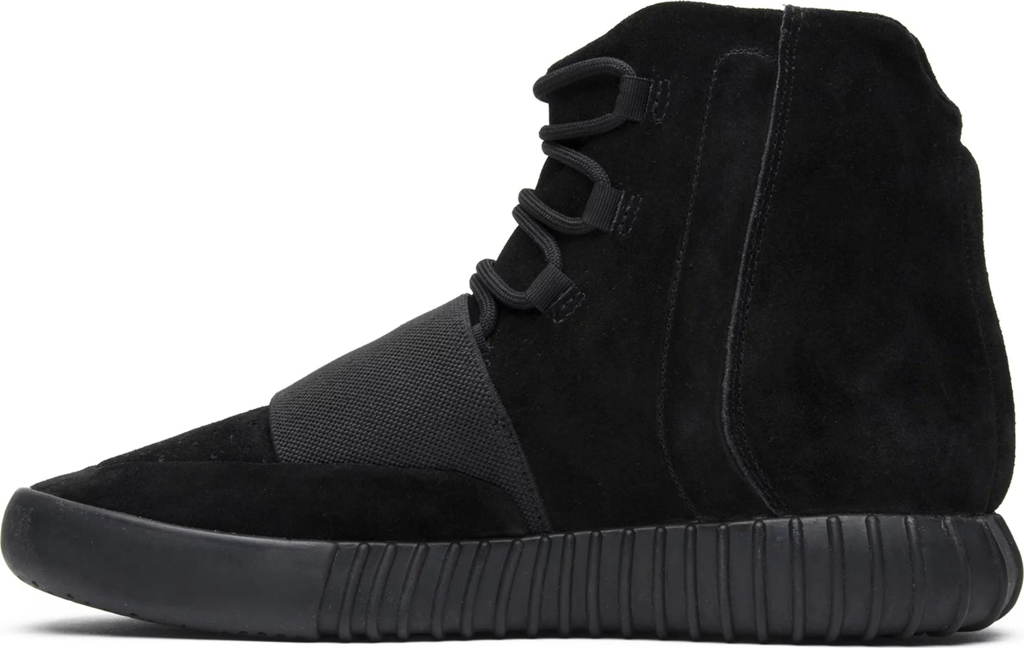 Kanye teased the Yeezy Boost 750 ‘Black’ colorway in a February 2015 interview with New York’s Power 105.1 FM. Later he was spotted wearing a black suede/gum sole iteration of the sneaker at a Givenchy show during New York Fashion Week. Released on December 19, 2015, as the second colorway of the Yeezy Boost 750 line, the ‘Black’ sneaker features a full suede upper, perforated vamp, and ankle zipper.