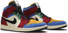As part of Jordan Brand's 'Fearless Ones' collection, the Blue The Great x Air Jordan 1 Mid 'Fearless' came out mid-November 2019 in mixed materials and diverse color-blocking conceived of by the visual artist. Michael Jordan's seminal hoops shoe from 1985 gets reworked in supple suede, corduroy fabric and a soft chenille Swoosh logo. Dual branding hits include a world-famous wings logo at the ankle and the artist's multi-color bubble graffiti mark on the heel.