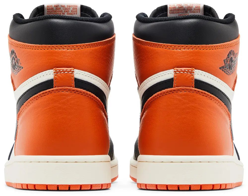 The 2025 edition of the Air Jordan 1 Retro High OG 'Shattered Backboard' revives the popular 2015 colorway, inspired by the jersey that Michael Jordan wore during an exhibition game in Italy following his rookie NBA season. (He shattered the backboard while executing a one-handed dunk.) The high-top sports a leather upper that combines white quarter panels with a black forefoot overlay and matching black Swoosh while orange accents land on the toe box, heel, and collar flap.