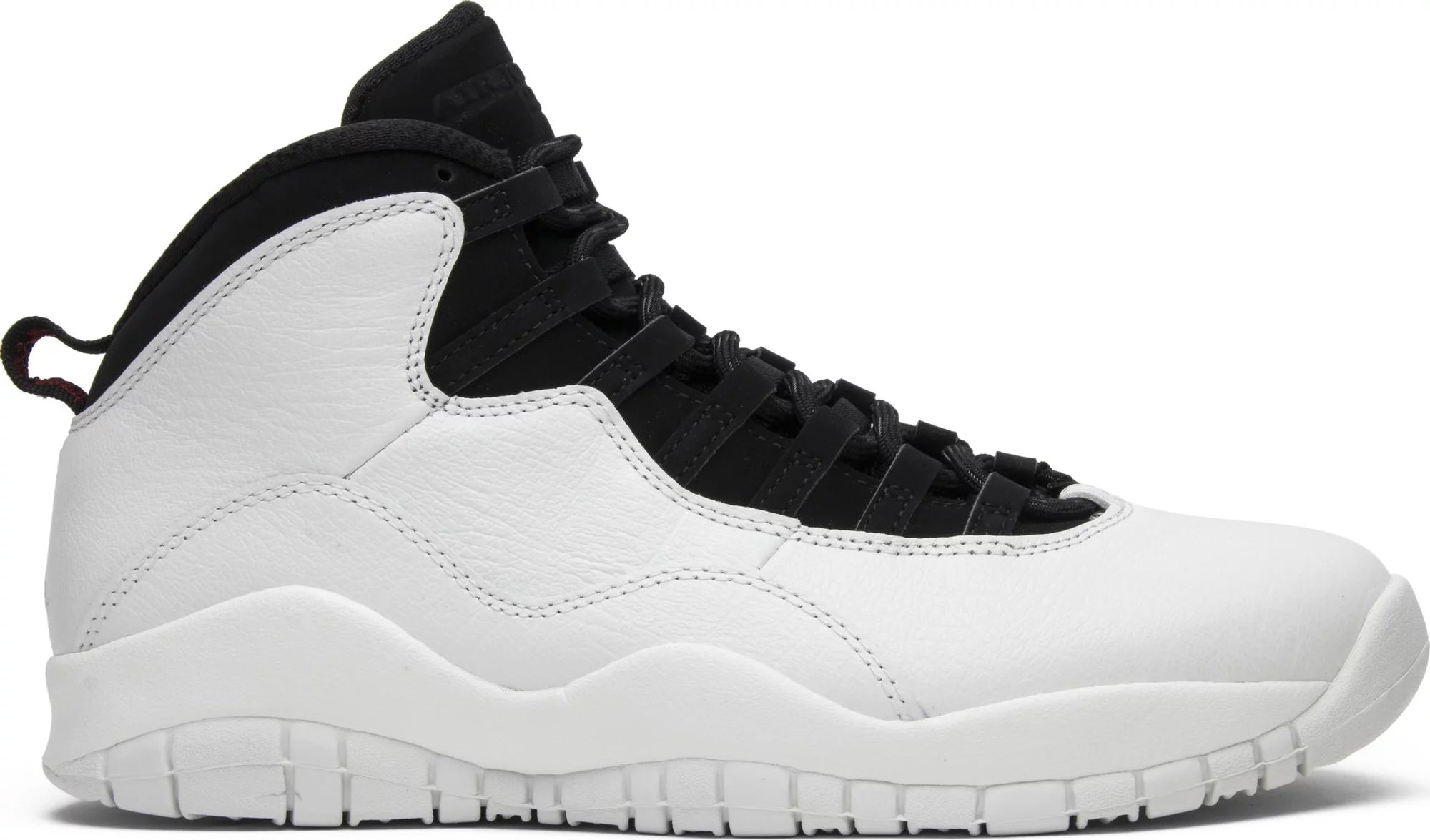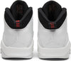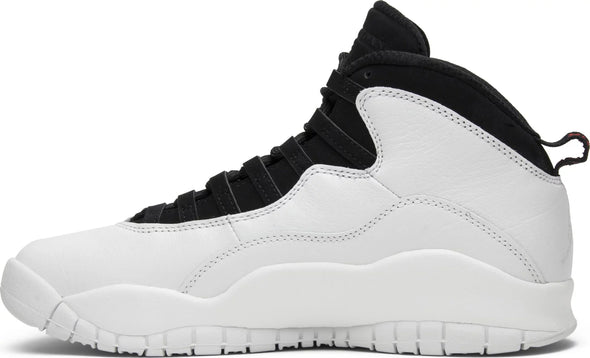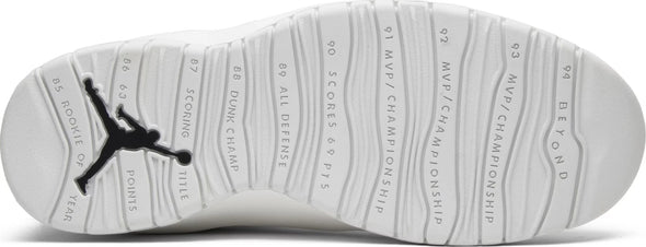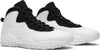 Following a short hiatus to pursue his dream of playing baseball, Michael Jordan announced his return to basketball in March 1995 with a simple declaration: “I’m back”. That moment is commemorated with this edition of the Air Jordan 10. The ‘I’m Back’ colorway features a white leather upper with a black tongue and lace unit atop a white midsole and outsole. Details include 'I'm Back' written on one heel tab with '3.18.95' on the other, and a list of Jordan’s accomplishments on the sole.
