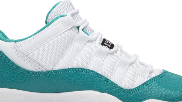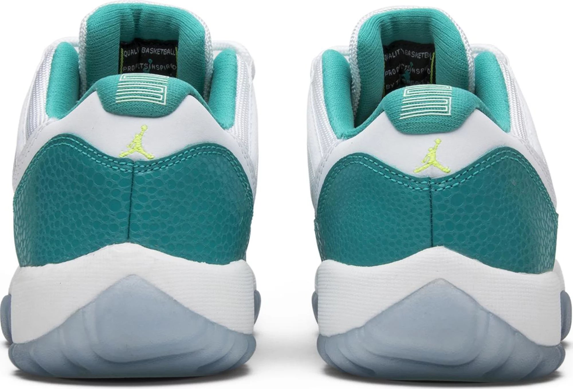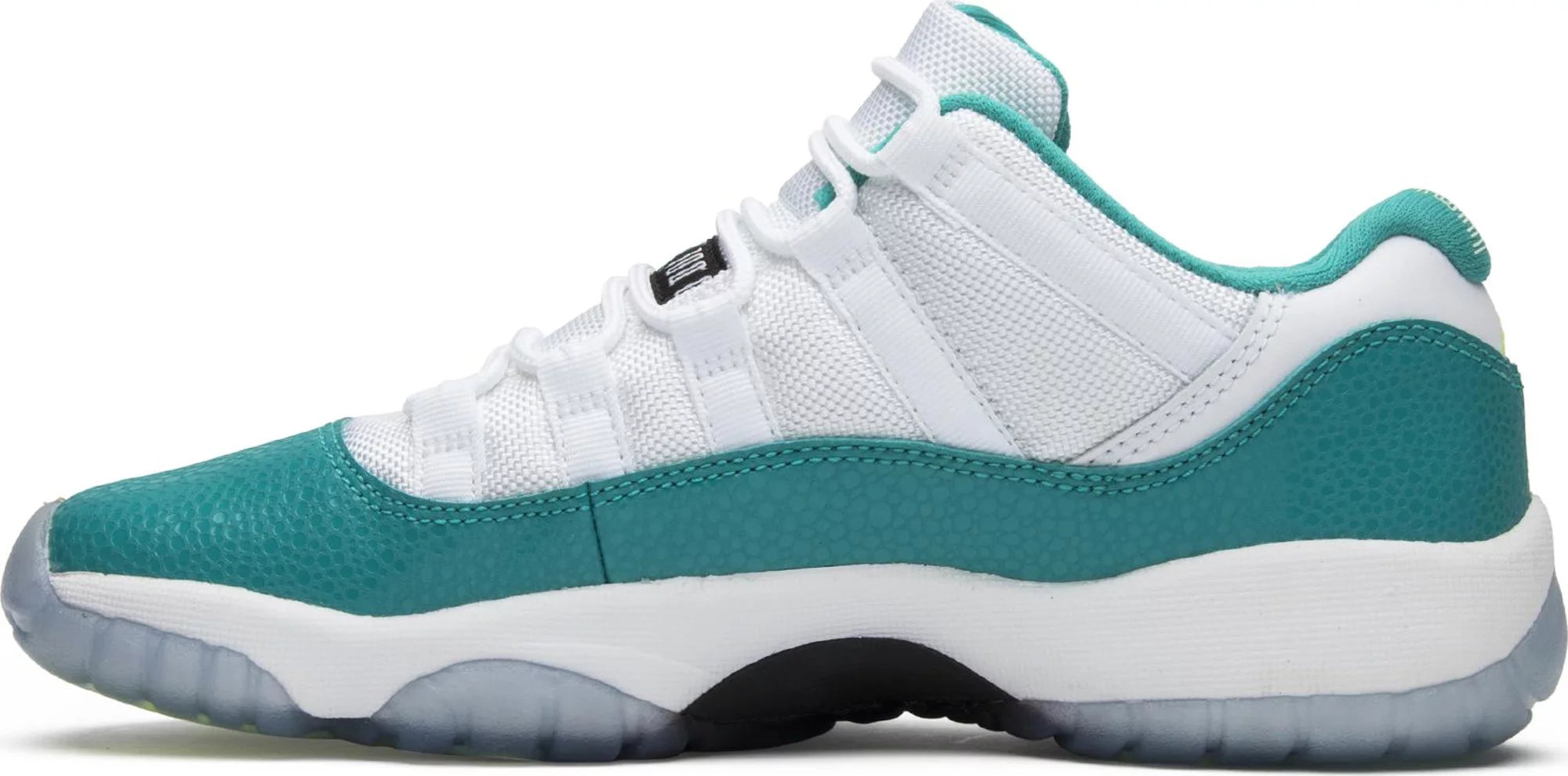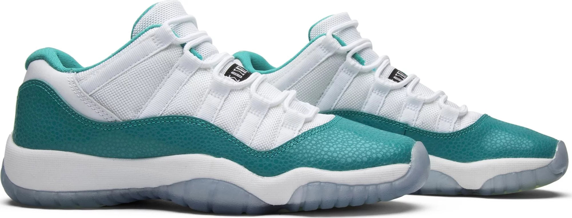 The Air Jordan 11 Retro Low GS ‘Aqua Safari’ released in May 2014 as a grade-school exclusive. The low-top ditches the silhouette’s signature patent leather construction and replaces it with Turbo Green leather, finished in a tonal Safari texture. The pastel hue is contrasted by a crisp white mesh build, with an additional shot of white on the foam midsole and icy translucent rubber on the outsole.