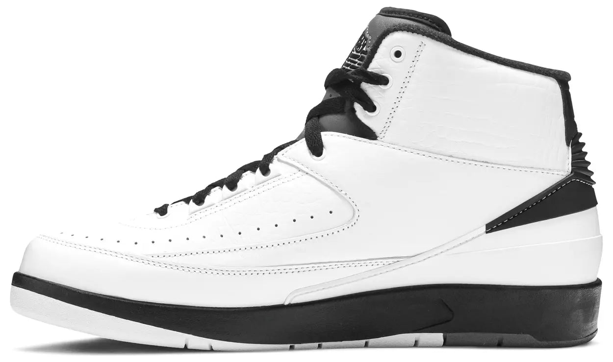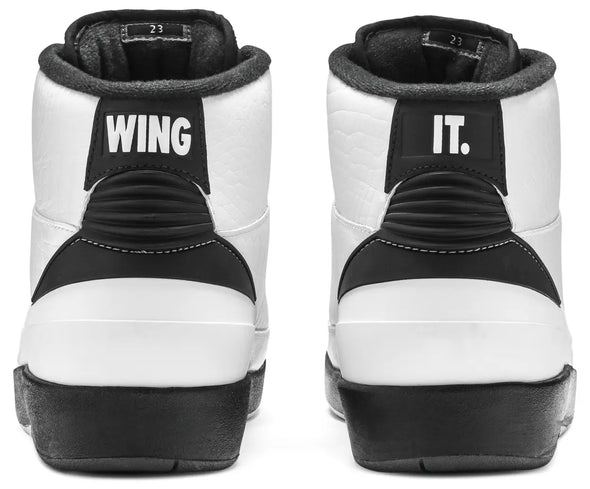 2016 saw a slew of Air Jordan 2 releases in celebration of the shoe's 30th anniversary. As a tribute to the original Air Jordan 2 ads in 1986, the Air Jordan 2 Retro 'Wing It' arrives in white, black, and grey, an homage to the vintage ad's black and white color scheme. The upper sees a faux reptile treatment with 'Wing It' appearing at the heel, a call out to the throwback ad which featured the same slogan. The sneaker released in celebration with the Just Don Air Jordan 2 'Beach,' the Air Jordan 2 'Alternate '87' and the Air Jordan 2 Low 'Gym Red' and 'Chicago' colorways.