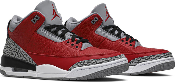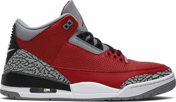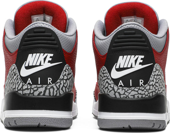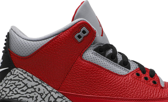 Dropping in conjunction with the 2020 NBA All-Star Weekend in Chicago, the Air Jordan 3 Retro SE 'Unite' showcases classic color blocking that stays true to the sneaker’s Windy City heritage. The tumbled leather upper is finished in a bold Fire Red hue, complete with Nike Air branding and grey cement-print overlays at the toe and heel. The mid-top is anchored by a contrasting white midsole with visible Air sole cushioning.
