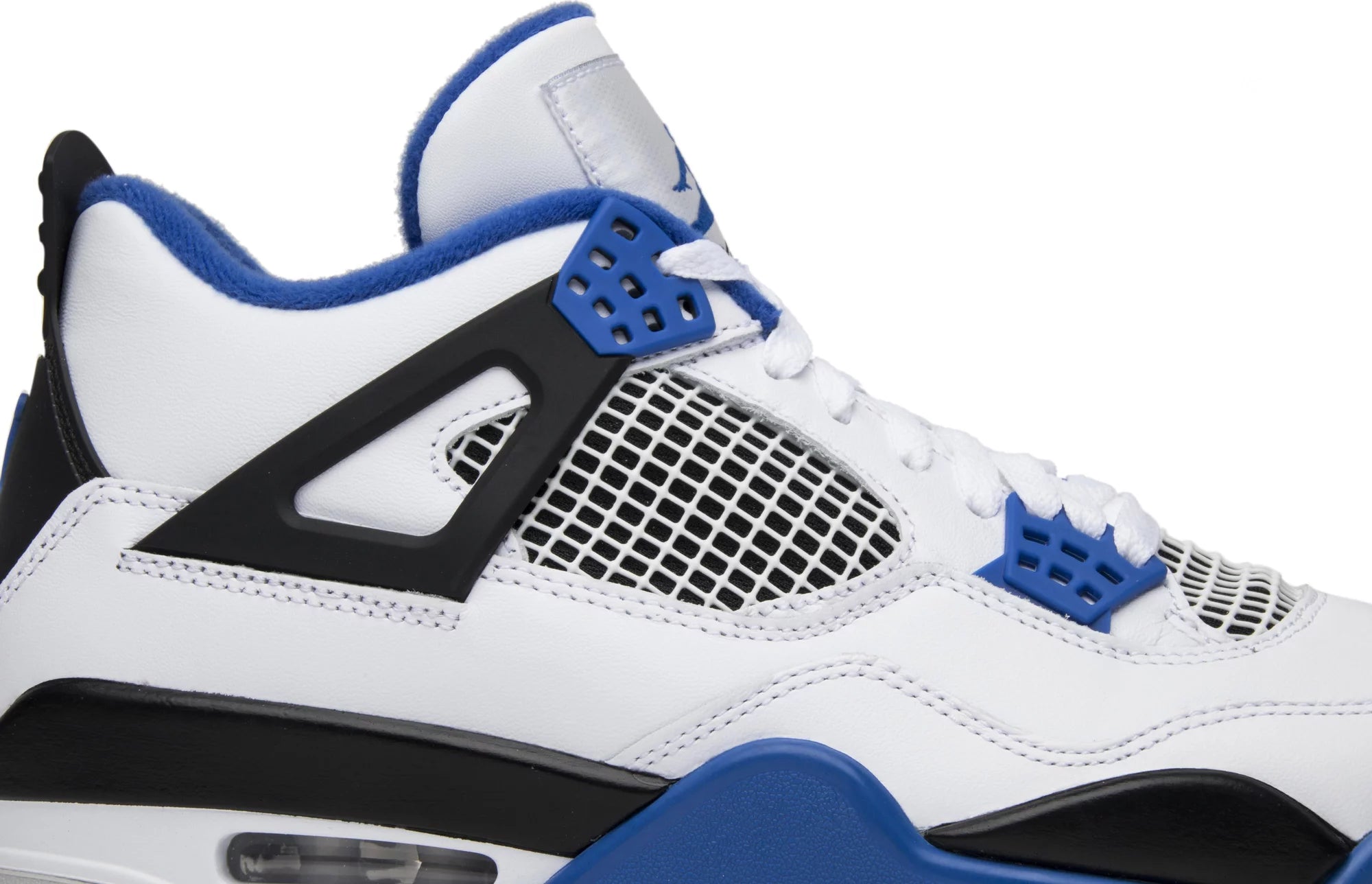 The Air Jordan 4 Retro ‘Motorsports’ is inspired by a 2006 friends and family colorway created for the 4th anniversary of MJ’s Motorsport’s Racing team. Released to the general public in March of 2017, the sneaker incorporates the teams’ white, black, and varsity royal blue colors, but removes the Mars Blackmon heel accent that graced the 2006 sneake. An Air Jordan 4 Retro 'Motorsports Alternate,’ released a few months later in a black colorway.