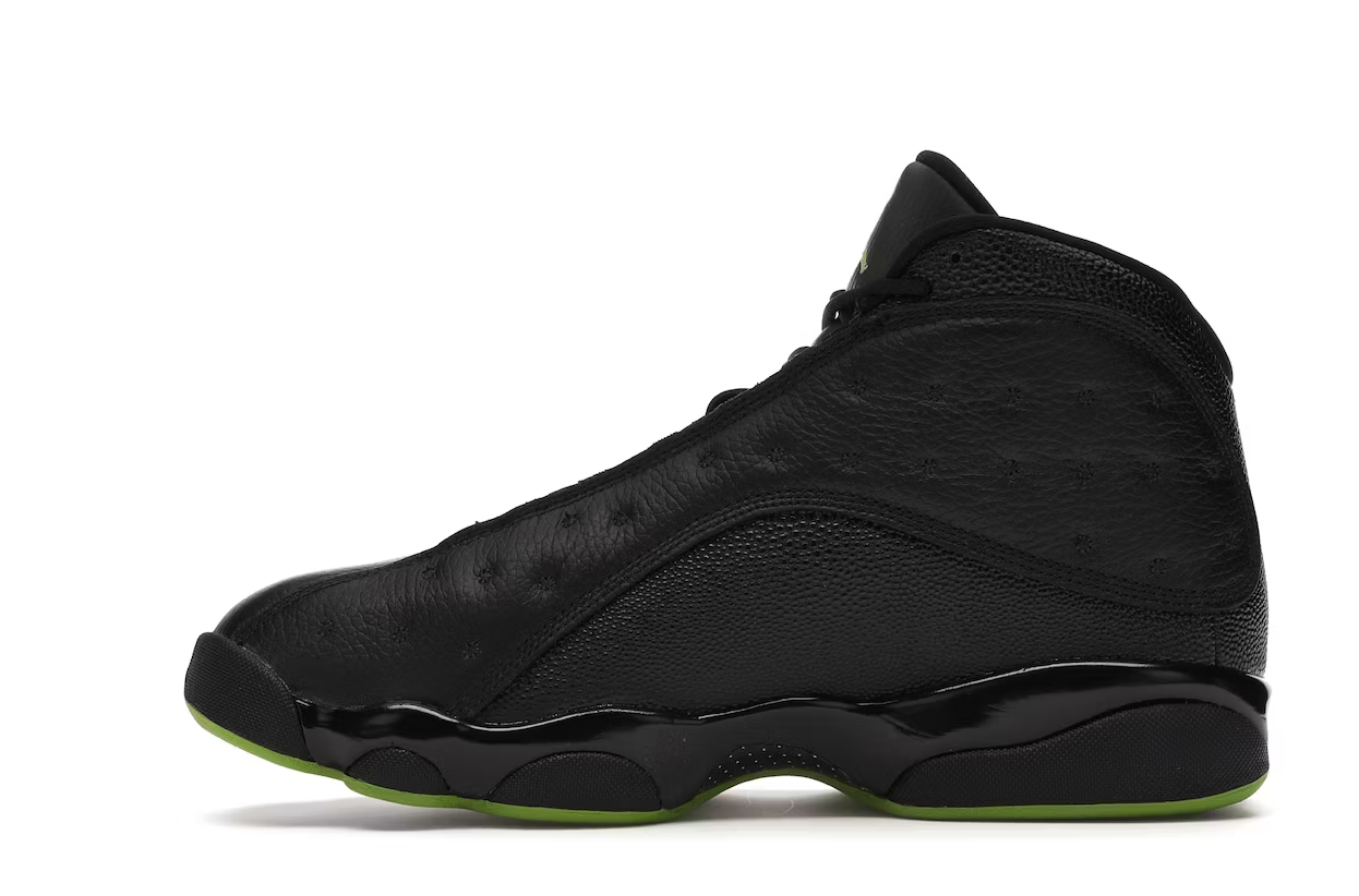 Displayed in the ‘Altitude’ colorway, the Air Jordan 13 features a black pebbled construction throughout the upper’s quilted design, while Altitude Green accents line the outsole and Jumpman branding. Inspired by Michael Jordan’s nickname, ‘Black Cat,’ the shoe also implements a paw-shaped outsole and a hologram logo.