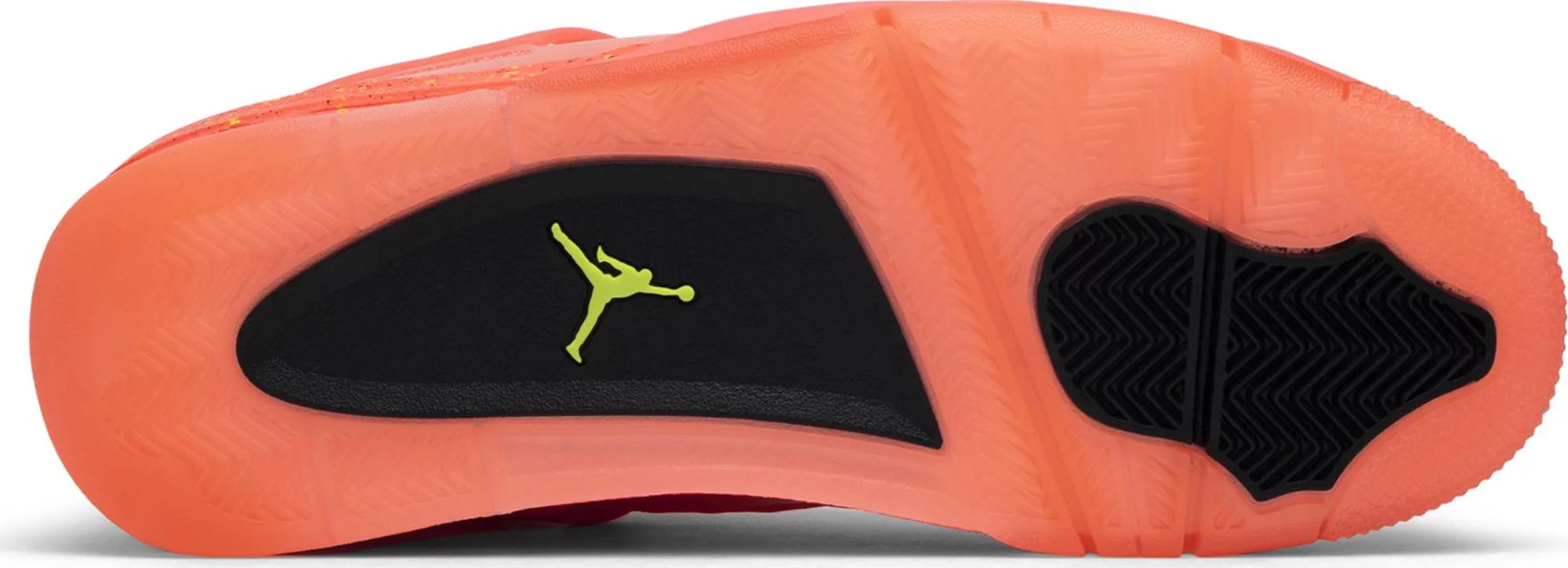 Sporting an energetic, monochromatic finish, the women’s Air Jordan 4 Retro NRG ‘Hot Punch’ is dipped entirely in Hot Punch. The mid-top’s leather upper is topped with patent leather paneling, while black and Volt speckling accents the midsole and eyelets. The herringbone outsole features partially translucent rubber.