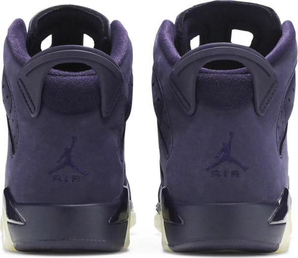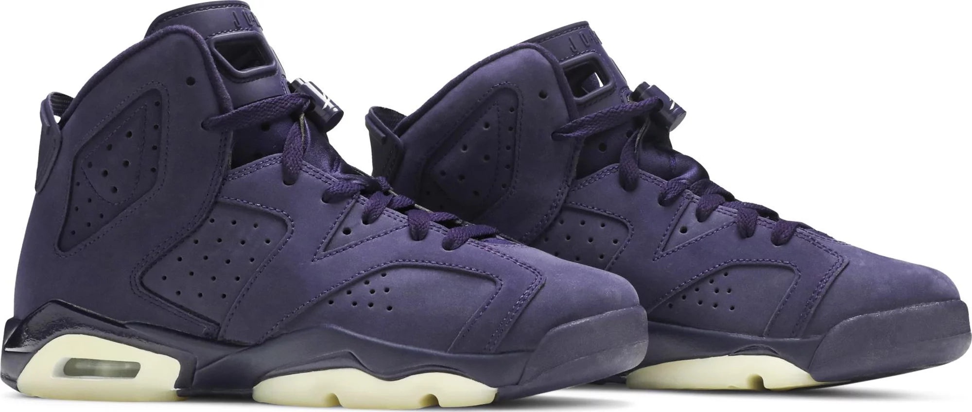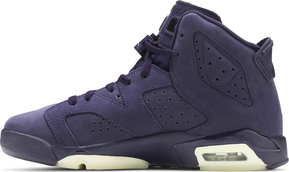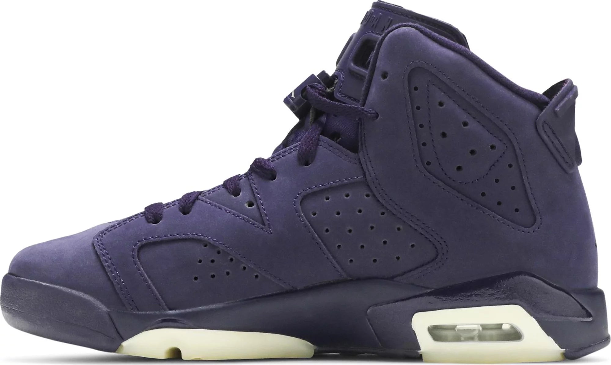 Released in late 2016, the Nike Air Jordan 6 Retro ‘Purple Dynasty’ features a premium, soft suede upper cast in purple, with tonal overlays and side perforations. The original AJ6 was inspired by the shape of Michael Jordan’s Porsche, and the design follows, with a slightly angled forefoot following through to a heel tab that resembles a spoiler. A dark purple midsole and translucent outsole support the look.