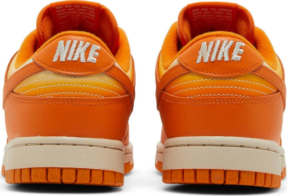 The Nike Women’s Dunk Low ‘Magma Orange’ makes over the vintage hoops shoe with a sun-bleached look. The smooth leather upper features solid orange overlays and a matching signature Swoosh. A unique color-bleed effect distinguishes the toe box, collar and quarter panel, highlighted by faded centers with concentrated color on the edges. The low-top rests on a traditional rubber cupsole that pairs vintage off-white sidewalls with a grippy orange rubber outsole.