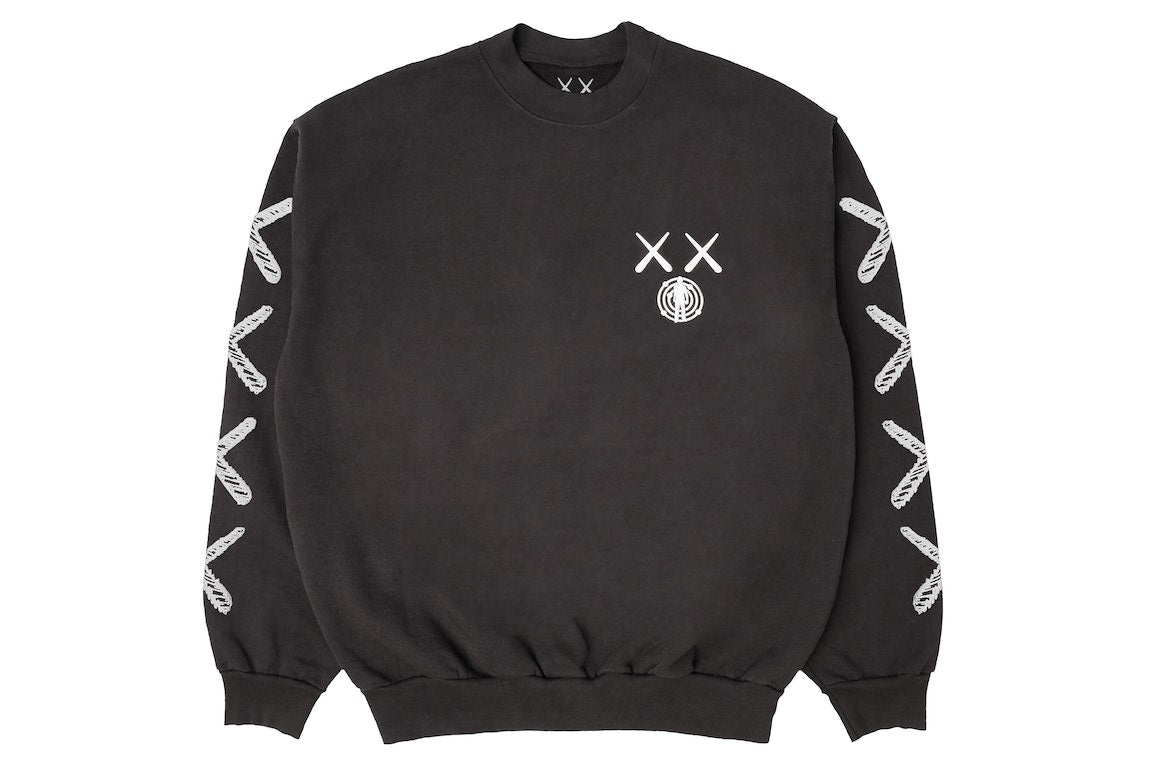 KAWS Kid Cudi Moon Man Back Print Crewneck Sweatshirt Vintage Black