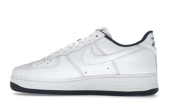 The Lil Yachty x Nike Air Force 1 'Concrete Boys' represents the Atlanta rapper's first joint venture with the Swoosh. The upper is crafted from crisp white leather with a textile collar lining in Midnight Navy. The latter hue makes repeat appearances on the shoe's unique branding elements. They include 'It's Us' tongue tags and the Concrete Boys' sledgehammer-wielding logo embroidered on the lateral heel. Lil Yachty's crew gets an additional callout on the leather back tab.