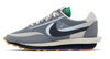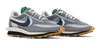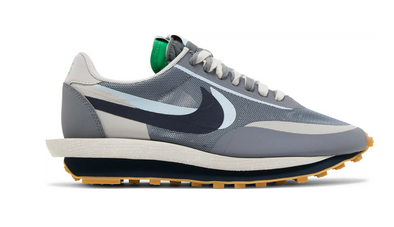 The sacai x CLOT x Nike LDWaffle ‘Kiss Of Death 2’ delivers a triple-threat collaboration centered around a hybrid silhouette that blends design notes from the LDV and the Waffle Racer. Inspired by CLOT’s Air Max 1 release from 2013, the sneaker showcases neutral grey tones throughout an upper crafted from semi-translucent mesh with fused synthetic overlays. Nike x sacai x CLOT branding is stamped on the leather heel tab, while woven Nike tags decorate doubled-up nylon tongues in grey and green. The sneaker is perched atop a double-stacked foam midsole, reinforced underfoot by a waffle-traction gum rubber outsole.