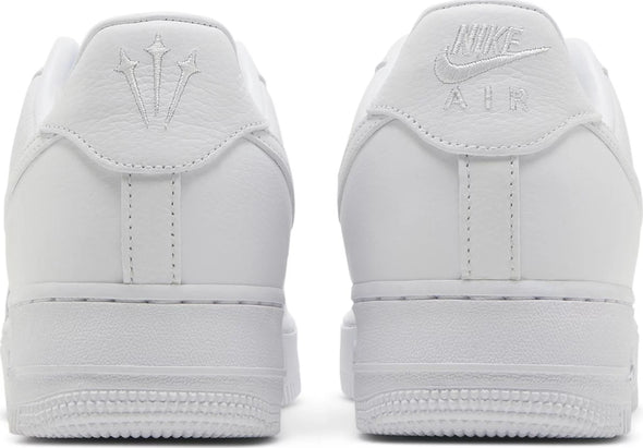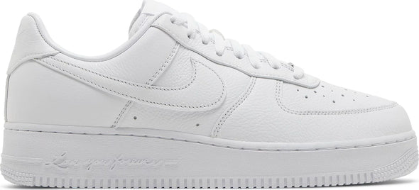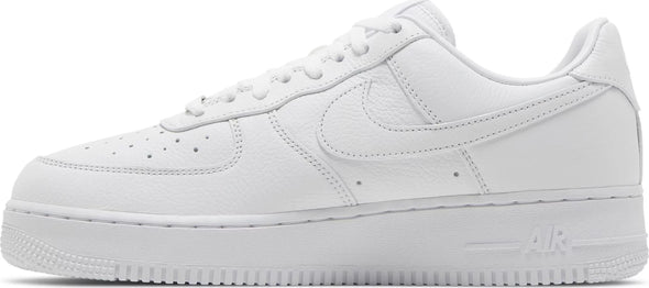 The NOCTA x Nike Air Force 1 Low ‘Certified Lover Boy’ delivers Drake’s subtle twist on the classic white-on-white AF1 colorway. The low-top dons a white tumbled leather upper, accented with a tonal Swoosh and mismatched NOCTA and Nike Air branding on each heel tab. Heritage details include a perforated toe box, variable width lacing and a low-cut padded collar. The vintage hoops shoe rests on a matching white midsole, featuring ‘Love You Forever’ inscribed in embossed lettering across the lateral sidewall.