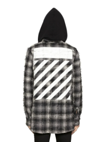 Off-White c/o Virgil Abloh Men's Plaid Flannel Hooded Shirt W/ Stripes