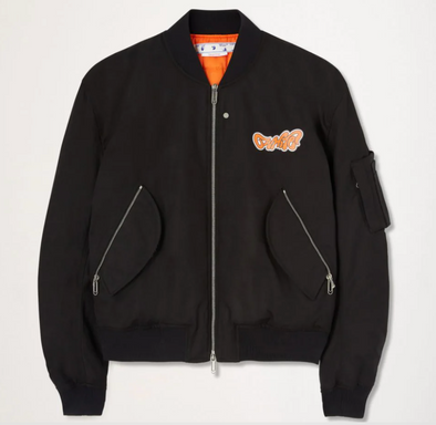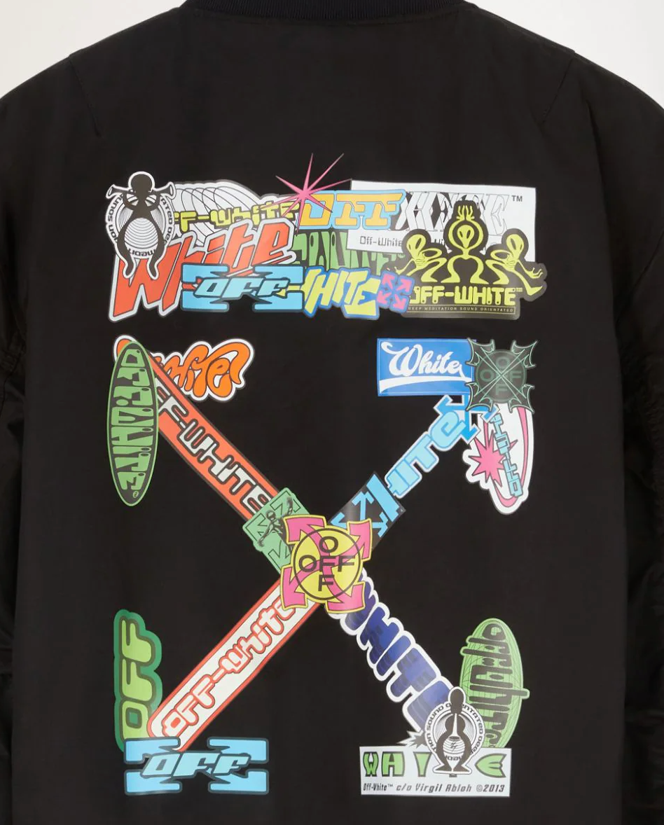 Off-White's graphic appeal is emphasised in the design of this casual bomber jacket. Crafted in classic black, their logo appears at the chest whilst their Arrows motif decorates the rear, comprised of a sticker-style design for a vibrant and striking finish.