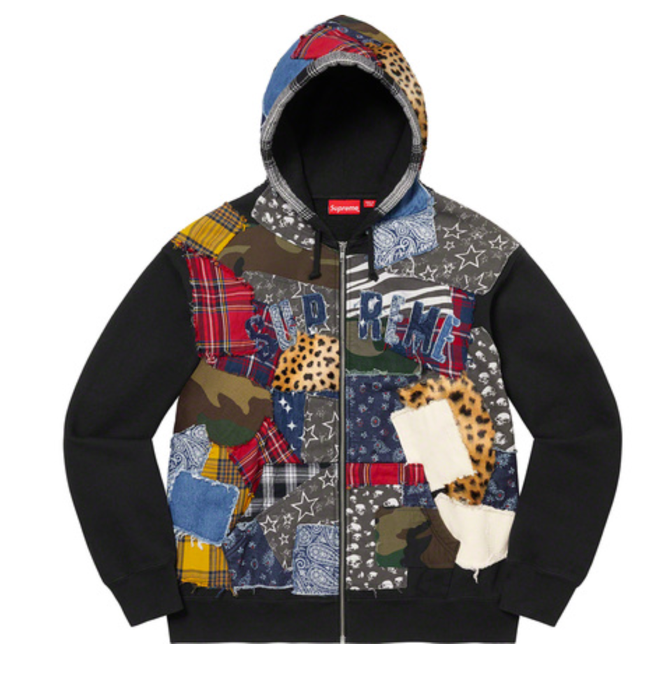 Supreme Patchwork Zip Up Hooded Sweatshirt
