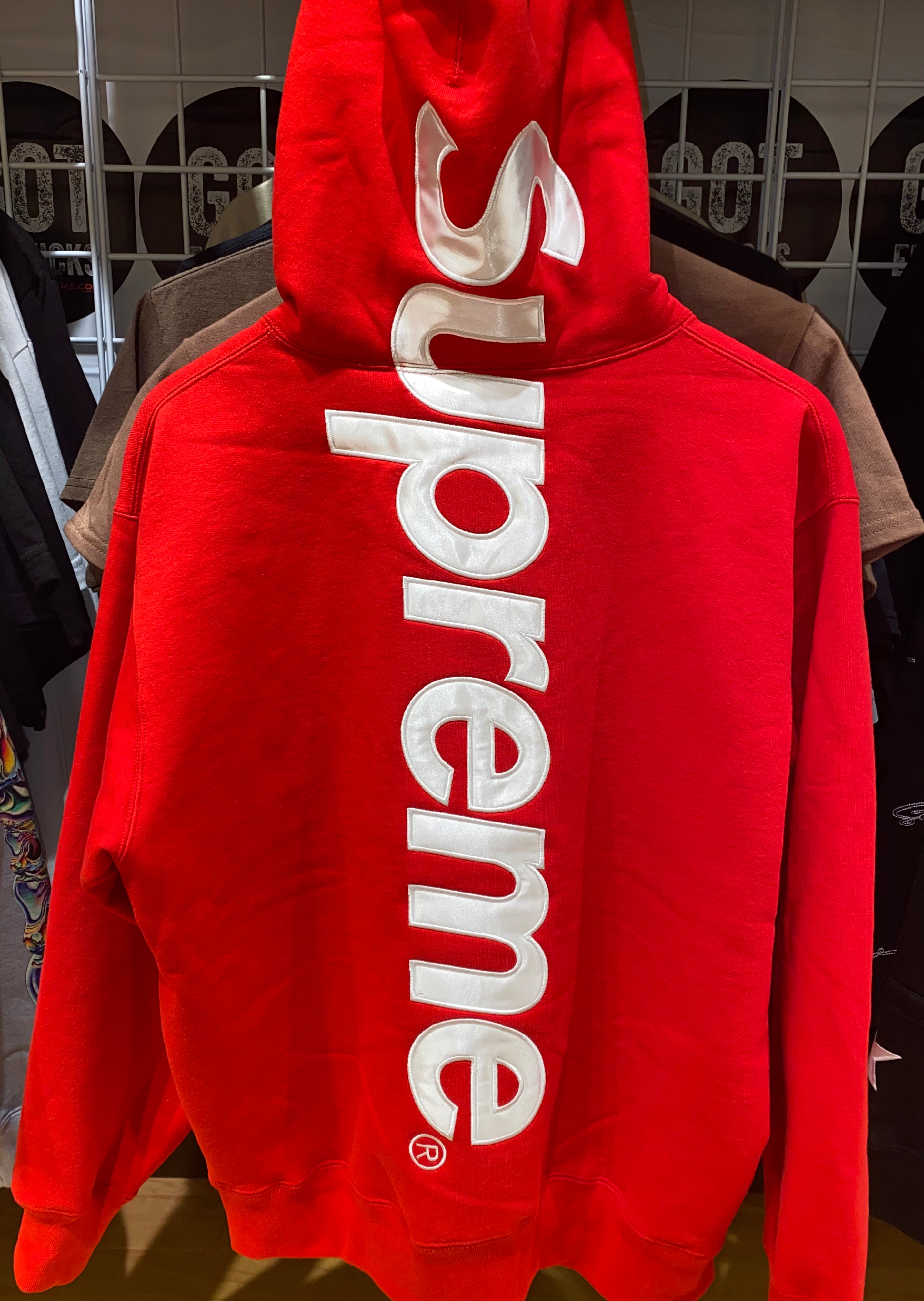 Supreme Satin Appliqué Red Hooded Sweatshirt