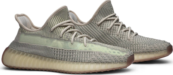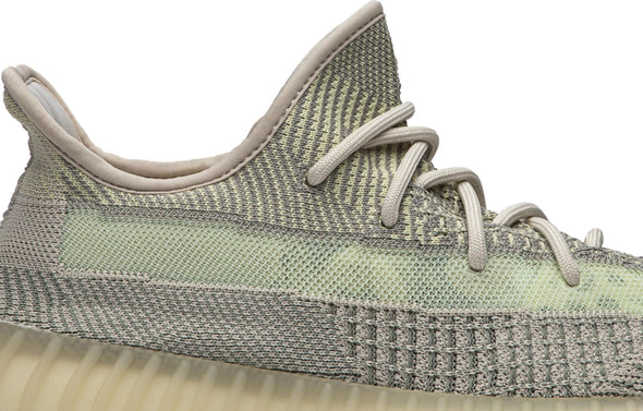 Defining an era, the adidas Yeezy Boost 350 V2 is the manifestation of Kanye West's unique design methodology and cultural influence. This 'Citrin' version—launched in September 2019—carries a dual-tone Primeknit bootie and tonal cord laces. Translucent monofilament panels are inserted into the sides while the back heel pull is removed for this colorway. Its distinctive TPU ribbed rubber sole, encasing Boost cushioning, is updated with a contrast tread pattern.