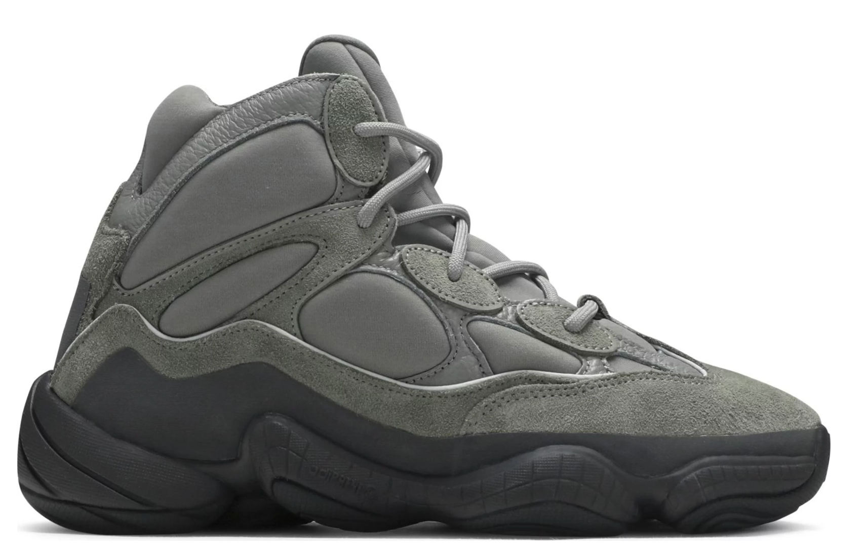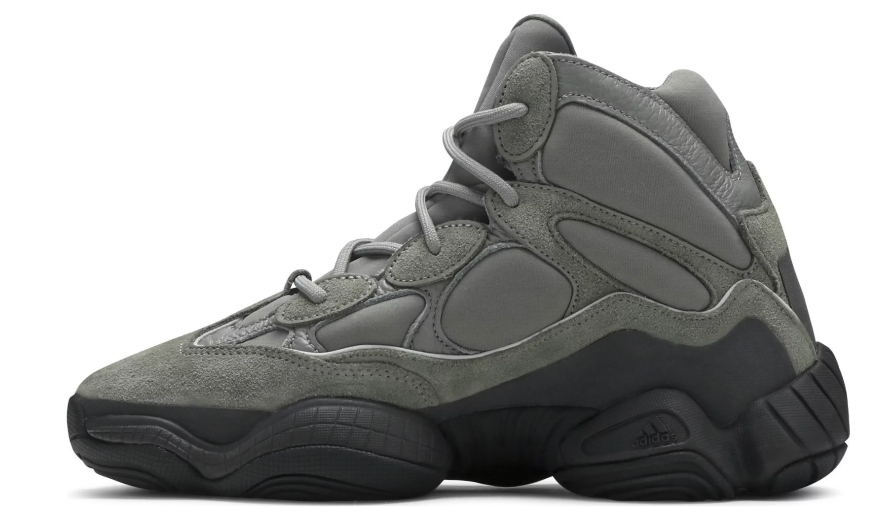 The adidas Yeezy 500 High ‘Mist’ delivers an understated colorway of the retro-inspired silhouette that borrows tooling from Kobe Bryant’s KB8 3, itself modeled after the brand’s Feet You Wear cushioning technology. Up top, grey elastane is fortified with tonal suede and leather overlays that reveal a subtle greenish cast. Reflective piping traces the wavy lines of the mudguard, while a grey rubber wrap provides added durability. A matching grey adiPRENE+ midsole delivers impact absorption and a smooth ride.